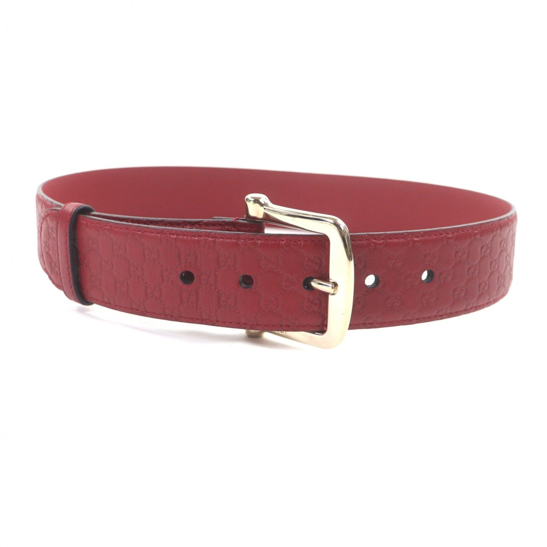 GUCCI 281548 Microguccissima GG Pattern Pin Buckle Leather Belt Red Gold Hardware 75/30 Made in Italy Men\'s