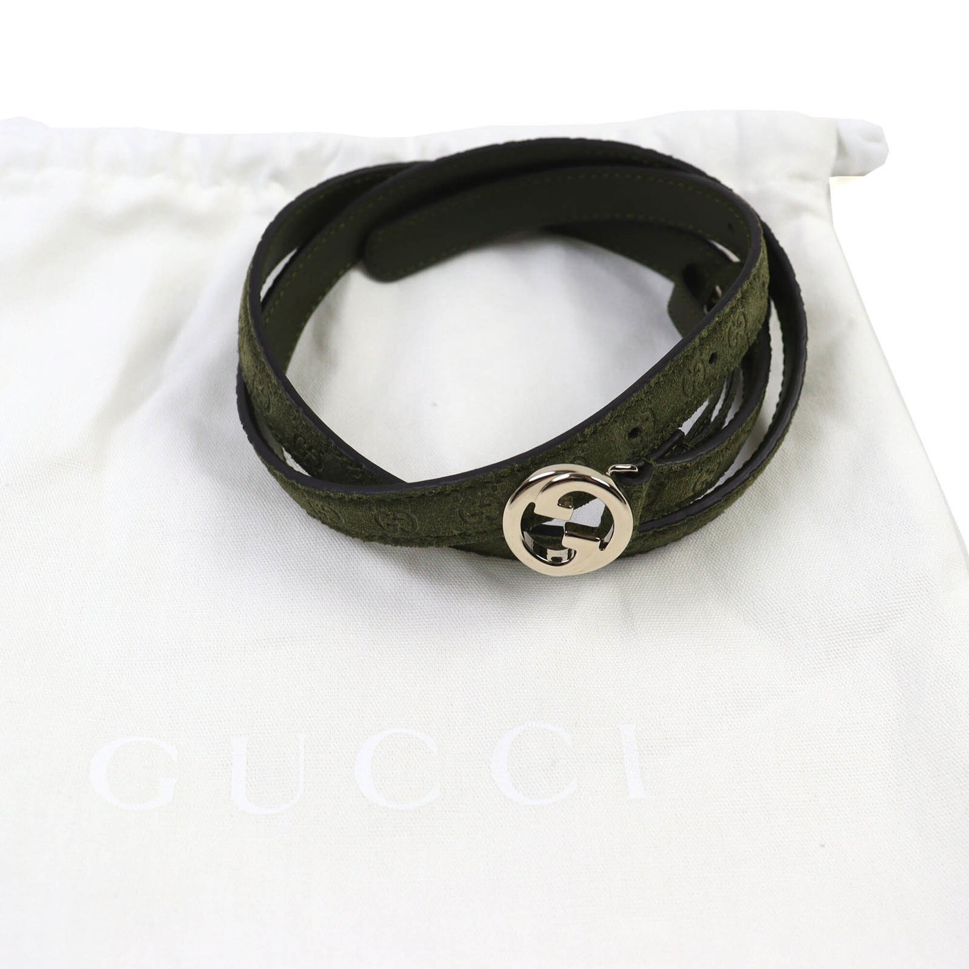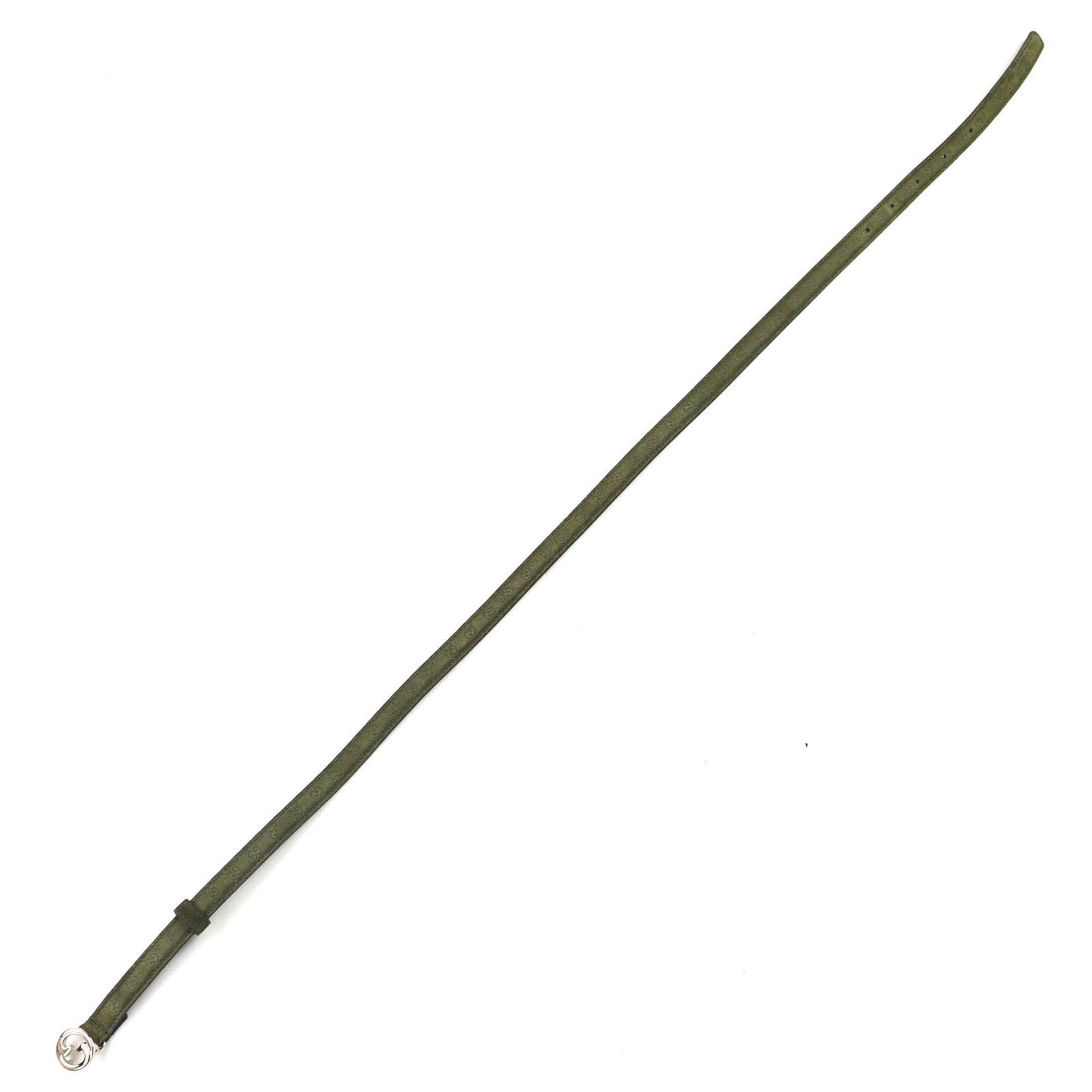 GUCCI 768431 Interlocking G Buckle GG Pattern Suede Leather Narrow Belt 75/30 Khaki with Dust Bag Made in Italy