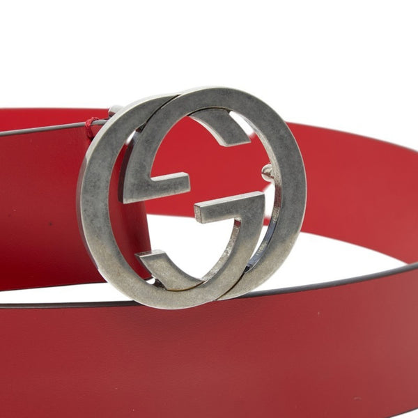 Gucci Interlocking G Logo Belt, Solid Color, Red Leather, Men\'s, 546389