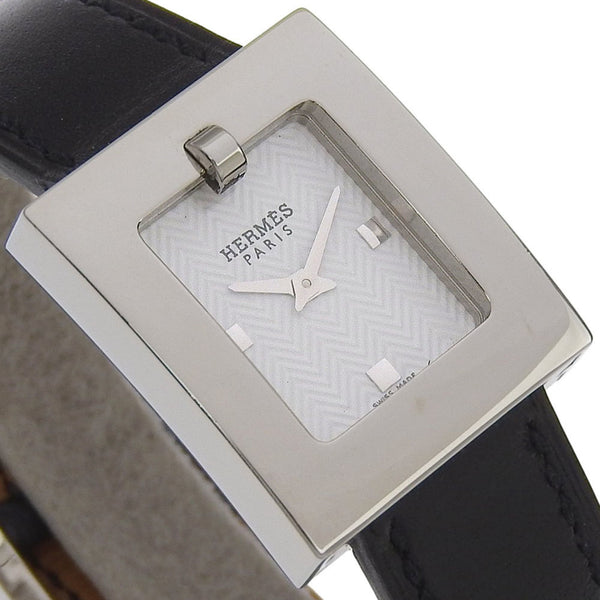 Hermès BE1.110 Stainless Steel and Leather Watch, 2000, Quartz Movement, Analog Display, White Dial, Women\'s Belt Watch