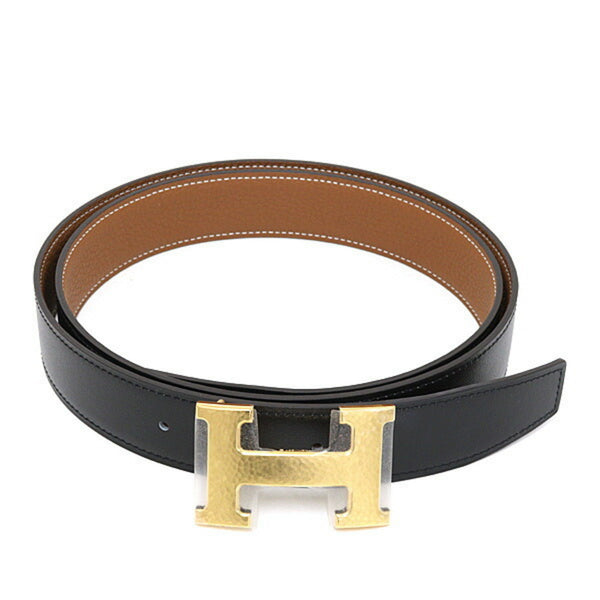 Hermes belt buckle \"H\" Maltre & leather (kit) 32 calfskin 135 Togo black/gold with W stamp, unused.