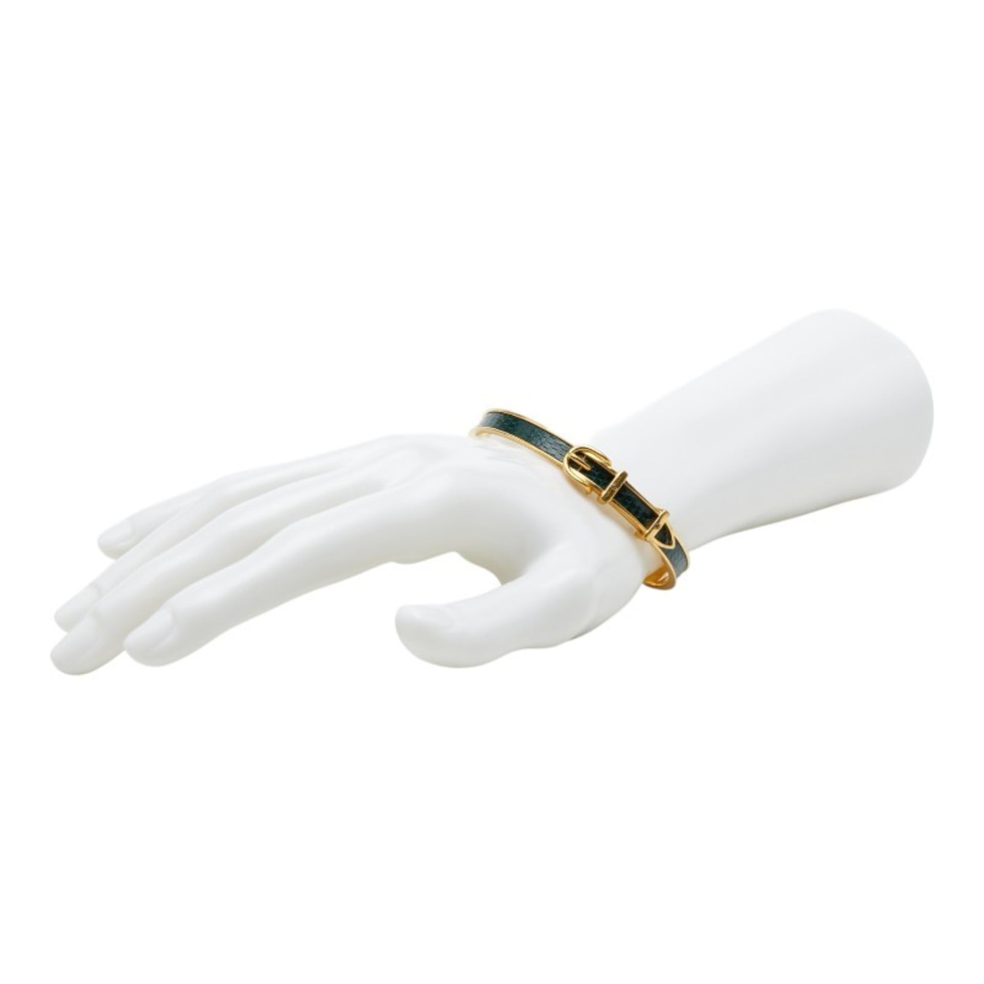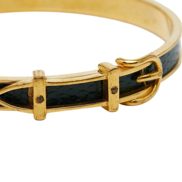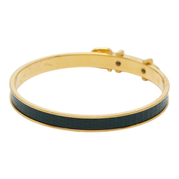 Hermes Belt Motif Bangle, Gold and Green Plated Leather, Women\'s