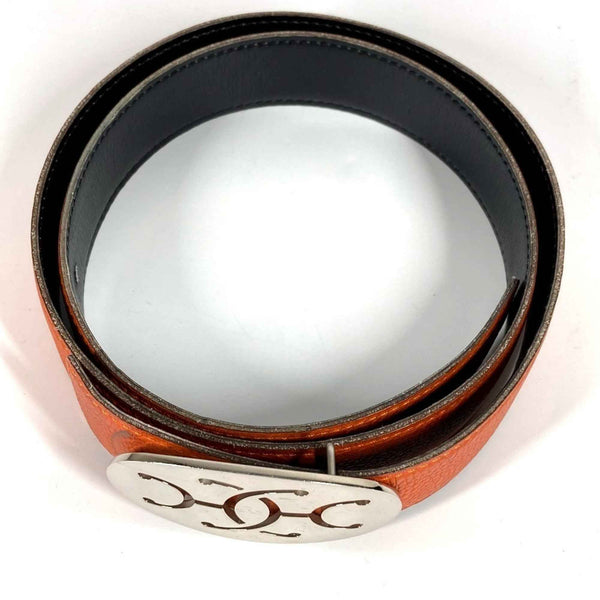 HERMES Double H Logo Buckle Belt for Bottoms, Leather, Orange, Men and Women