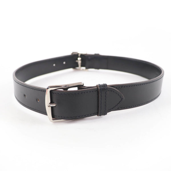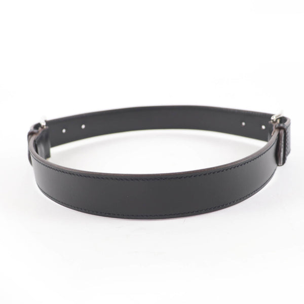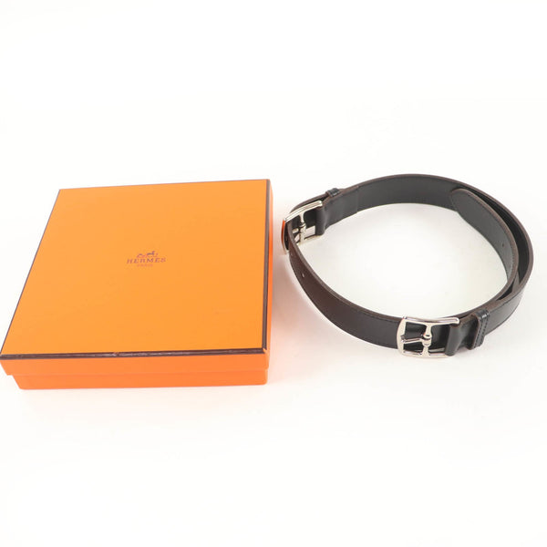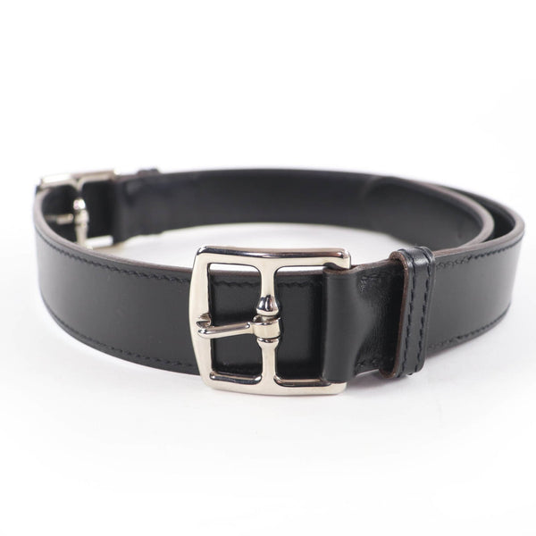 HERMES Vintage Etrivière Leather Belt, Silver Hardware, Margiela Era, Double Buckle, Black, □G Stamp, Box Included, Made in France, Women\'s