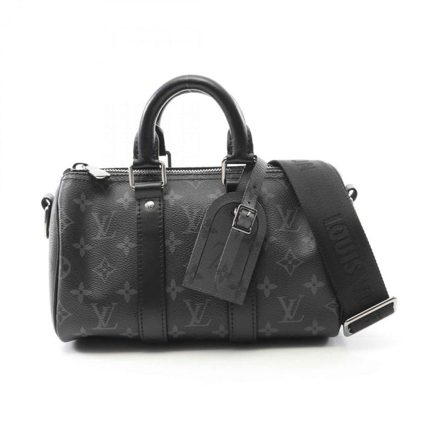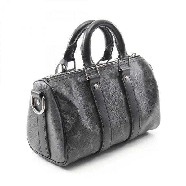 Louis Vuitton Keepall Bandouliere 25 Handbag, Coated Canvas and Leather, Monogram Eclipse Reverse, Men\'s, Black Gray, M46271