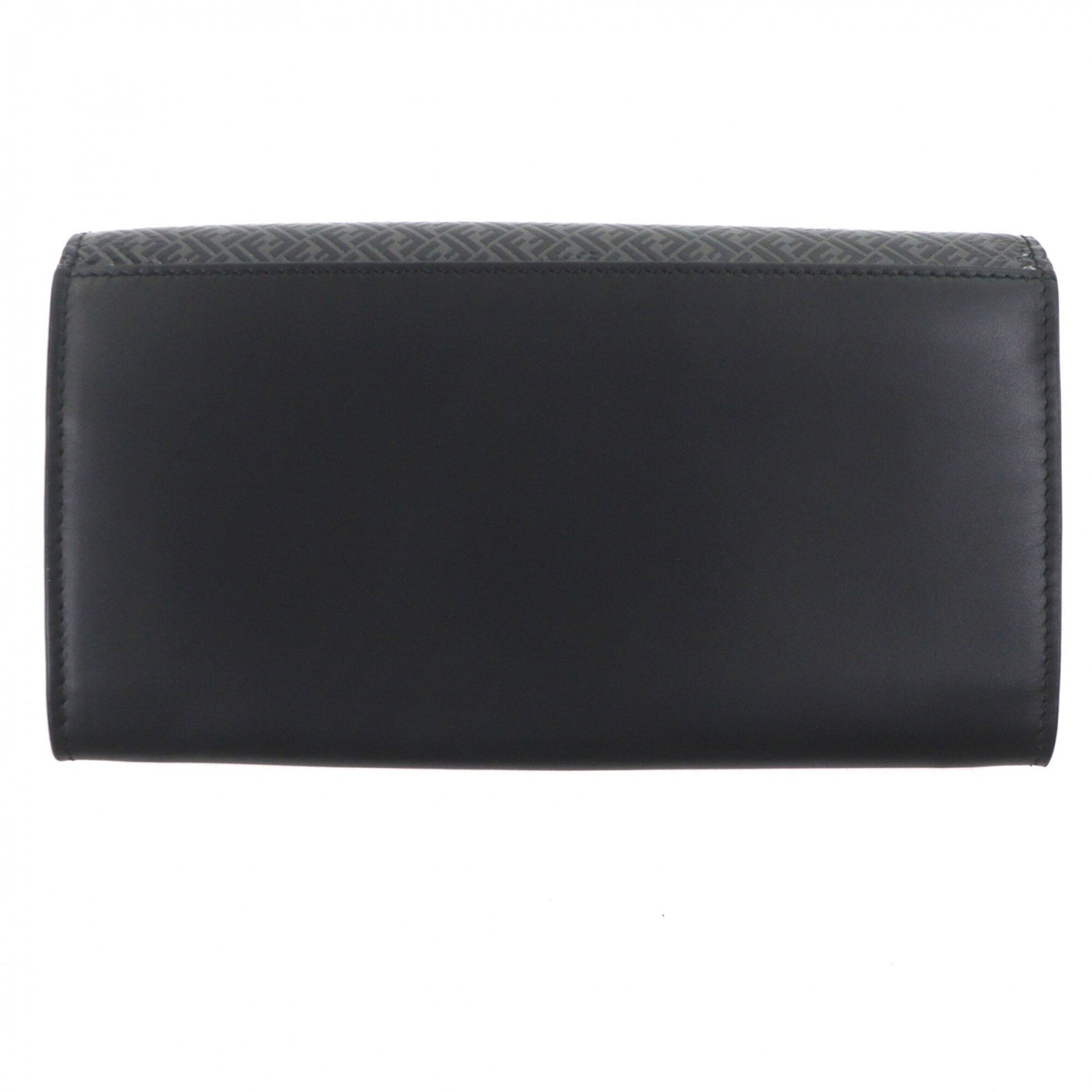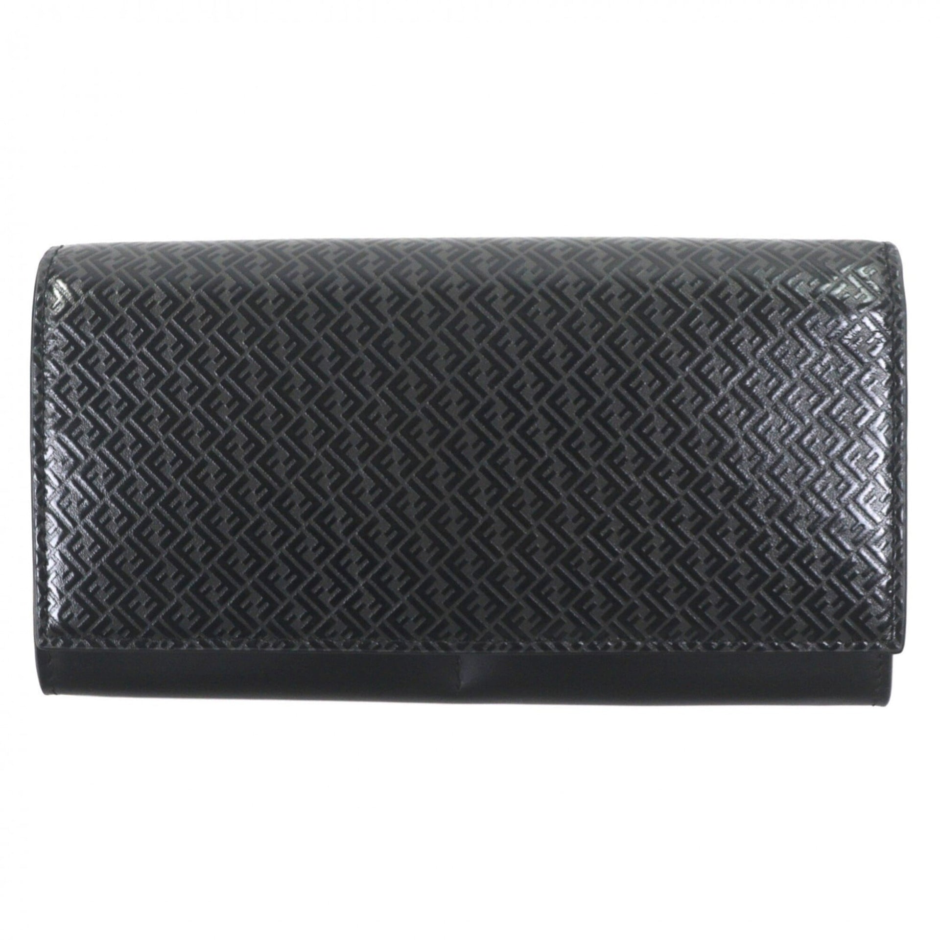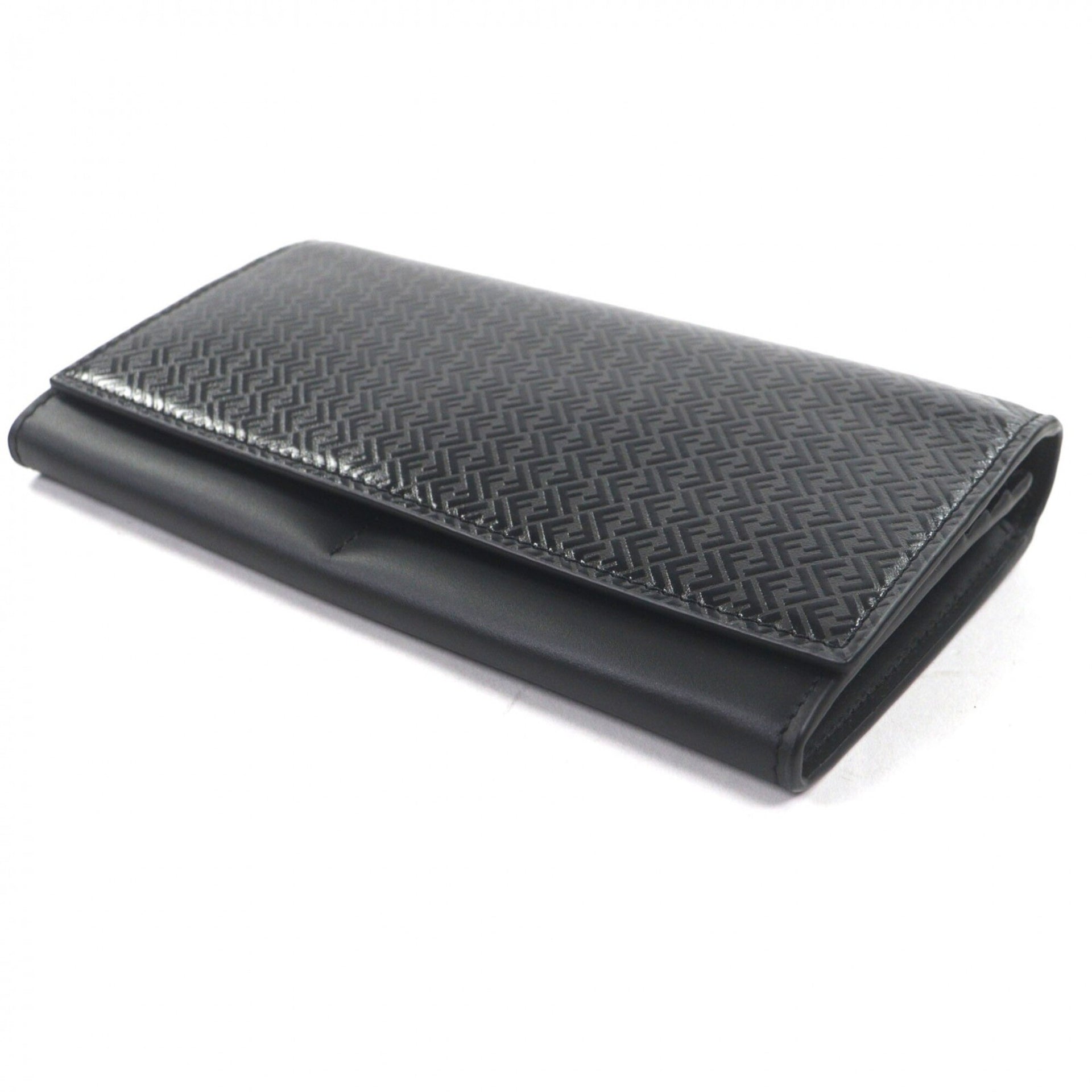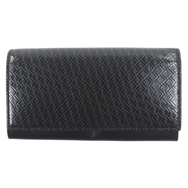 FENDI 7M0264 Leather Micro Zucca Long Wallet, Bi-fold, Black, with Box, Made in Italy, Men\'s