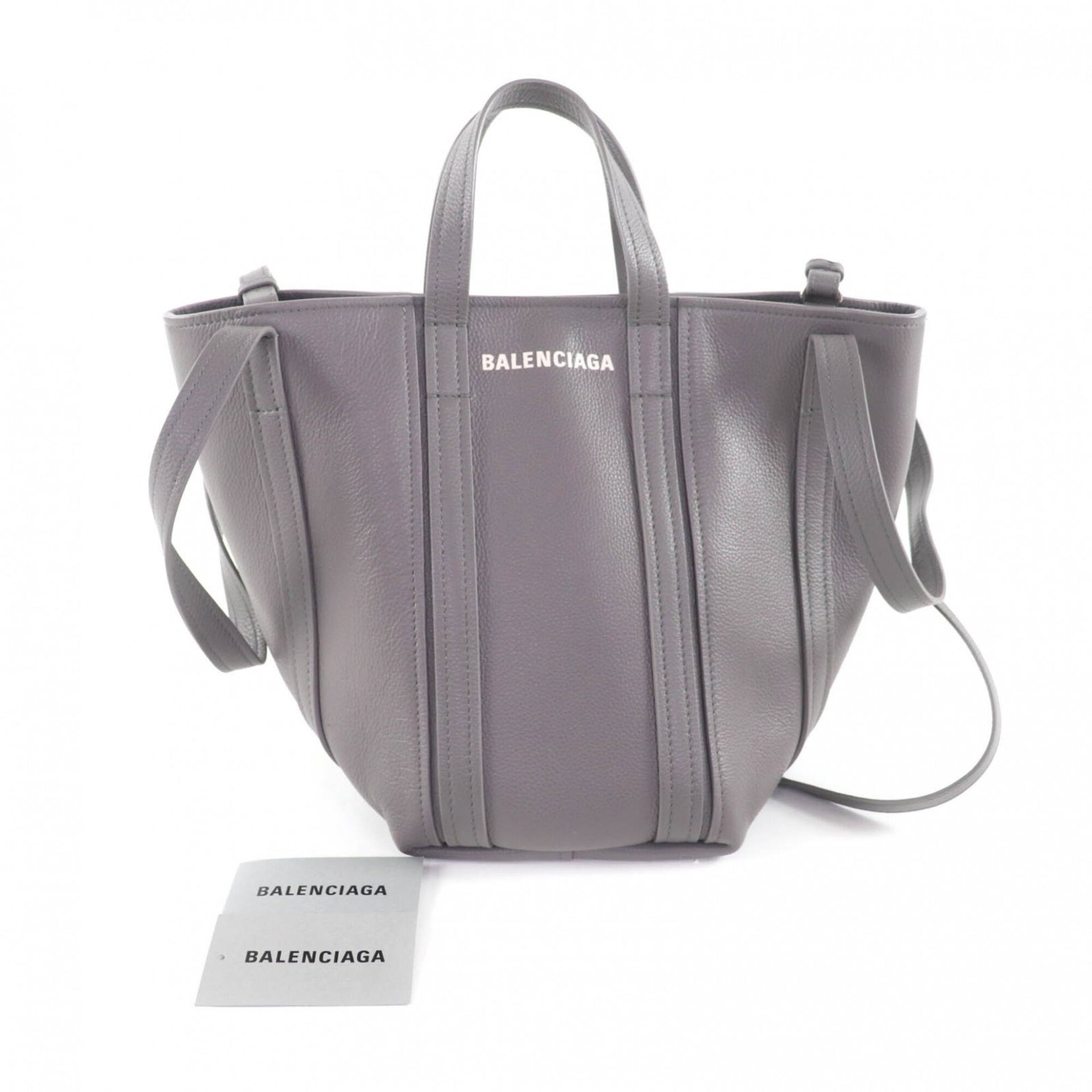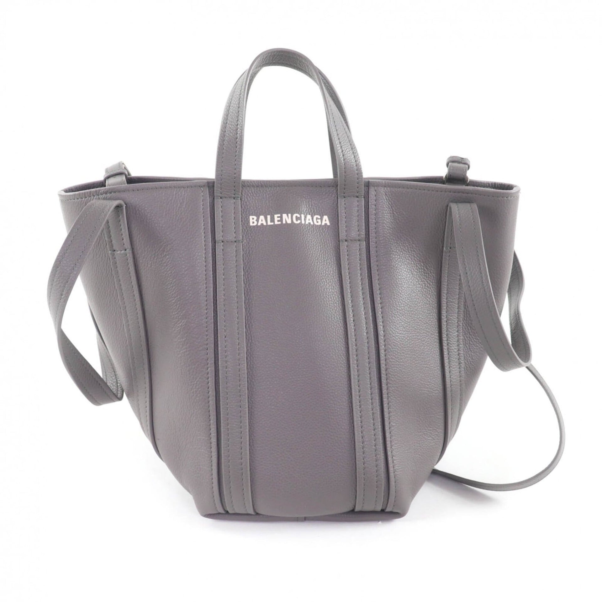 BALENCIAGA 672791 Everyday North-South Small Leather 2-Way Shoulder Tote Bag, Gray, Made in Italy, Women\'s
