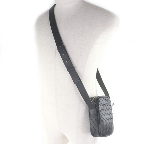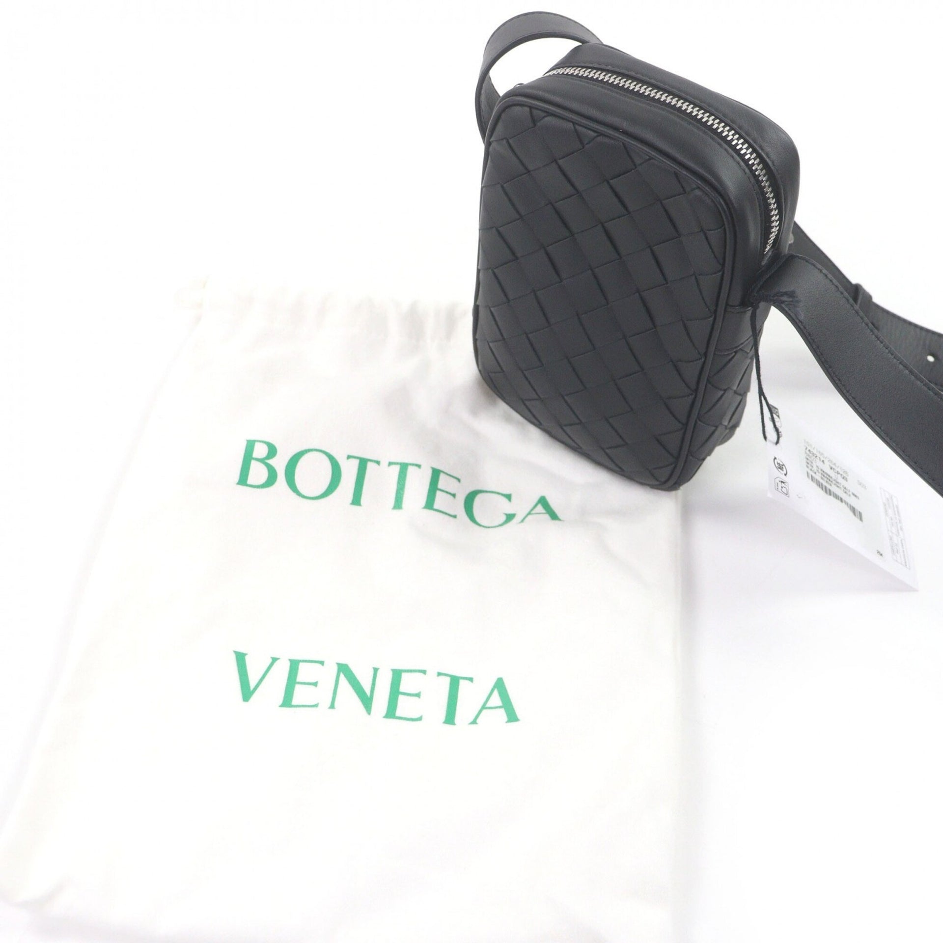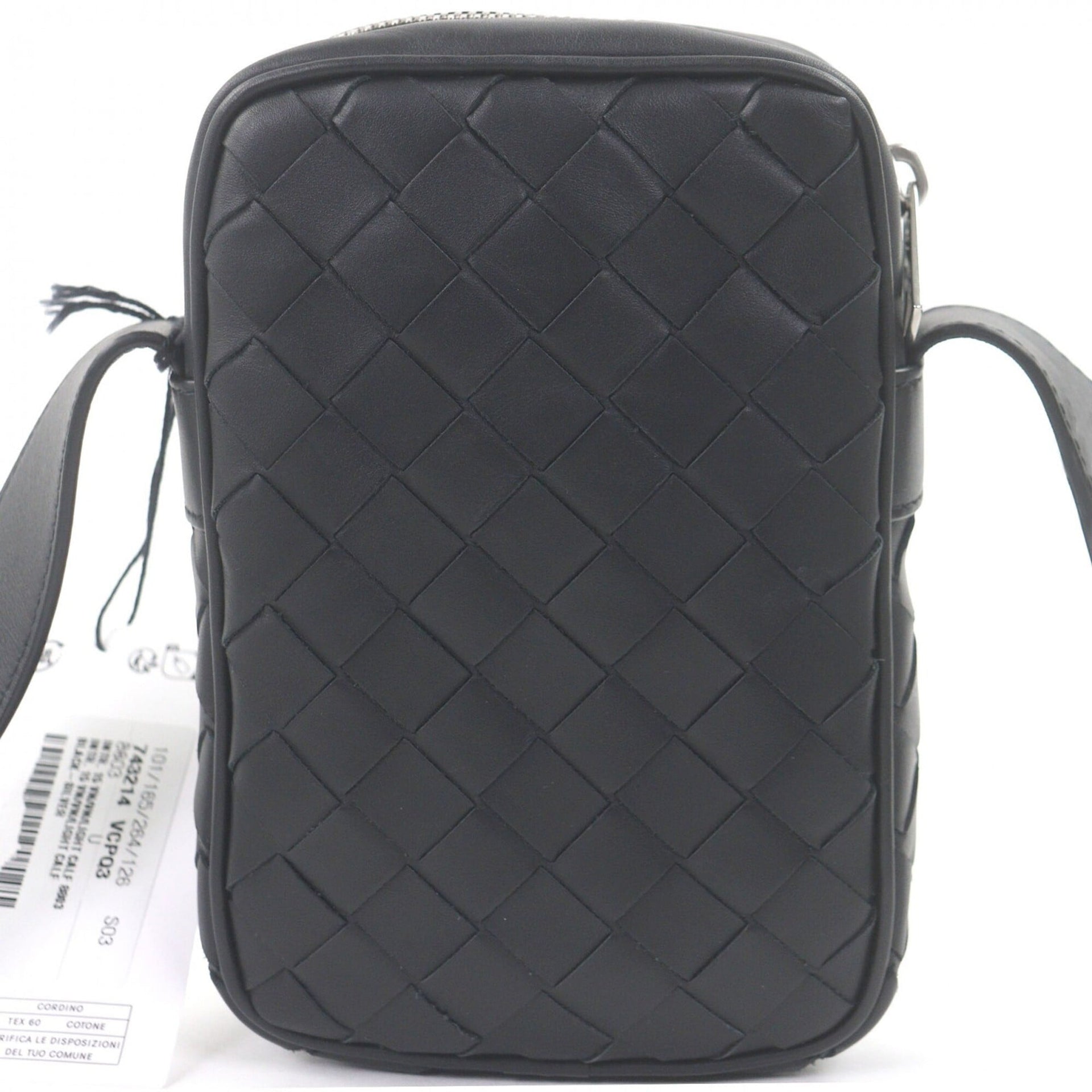 BOTTEGA VENETA 743214 Leather Intrecciato Crossbody Bag Phone Pouch Shoulder Black with Dust Made in Italy Men\'s