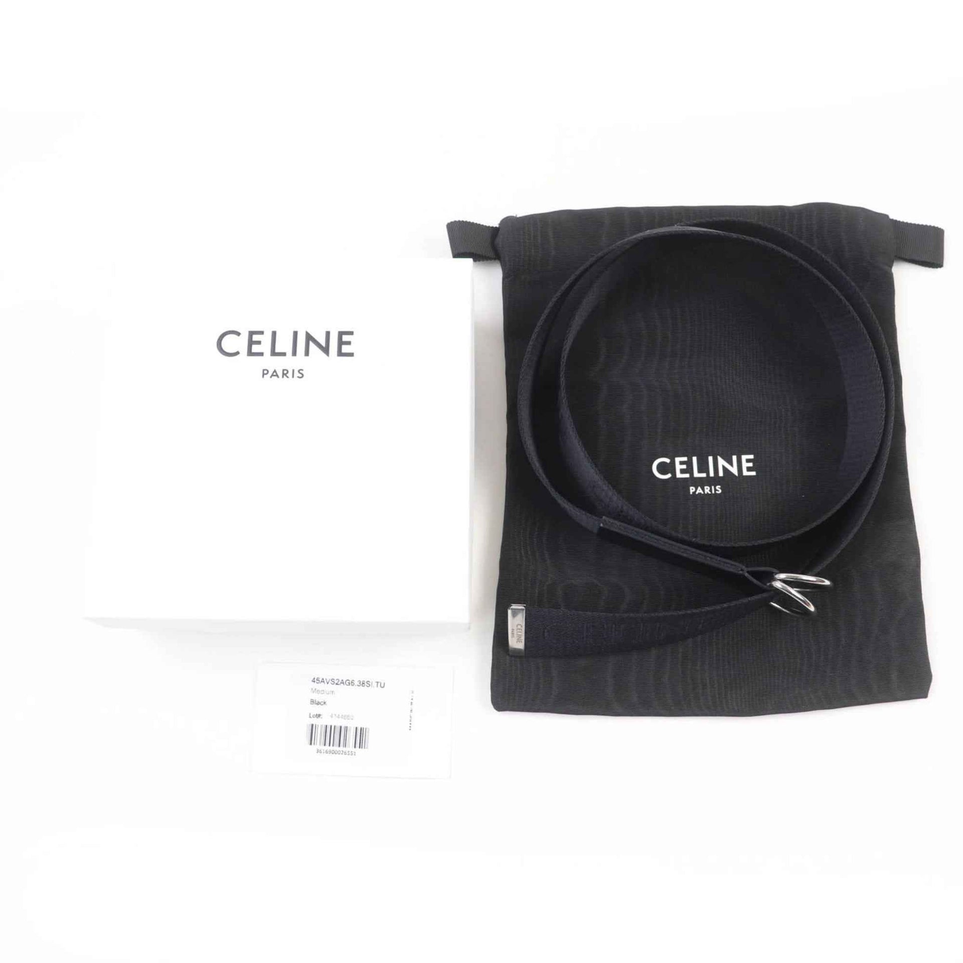 CELINE 45AVS2AG6 Logo Design Medium 30mm Double Ring Leather Belt in Black, Made Italy, Includes Box and Dust Bag