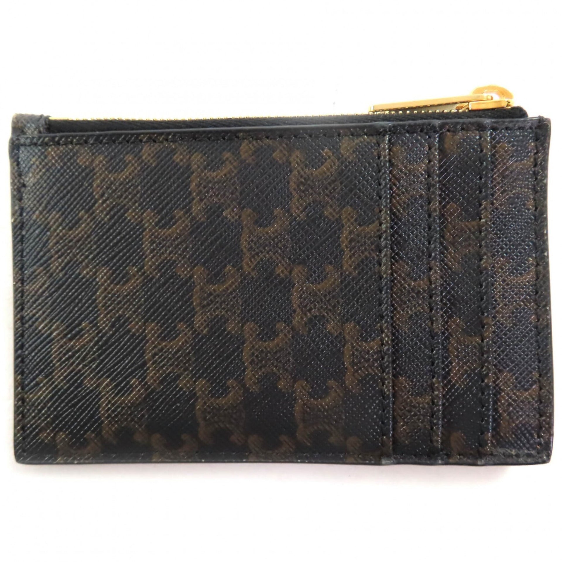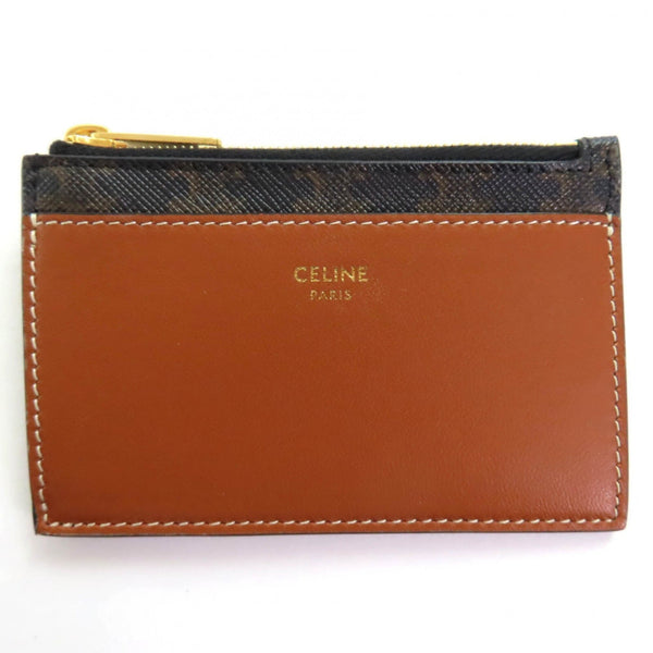 CELINE Triomphe Canvas Fragment Case, Pass Leather, Business Card Holder/Card Brown, Comes with Box and Dust Bag, Made in Italy, Women\'s