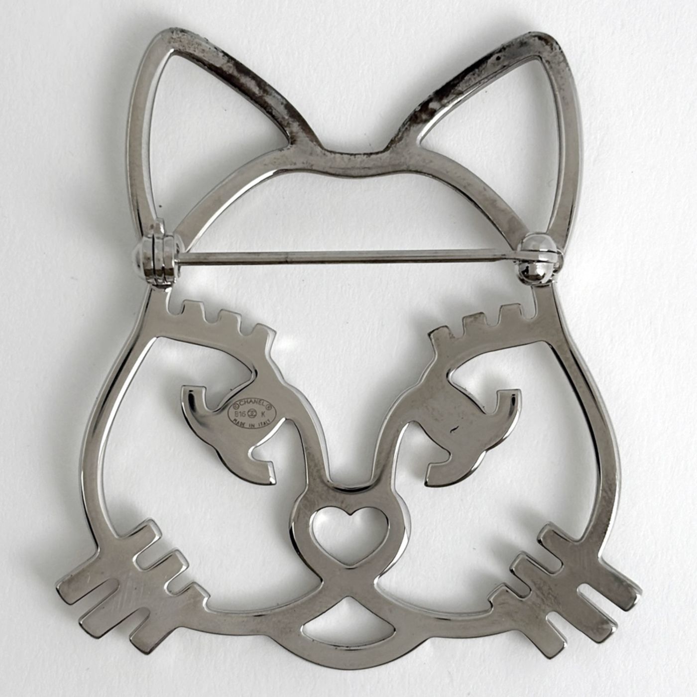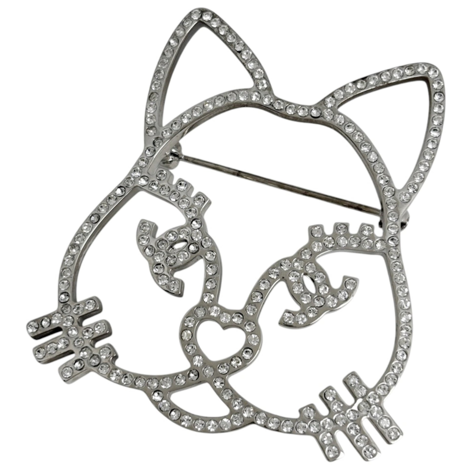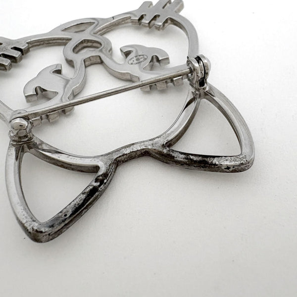 Chanel cat motif rhinestone brooch, Coco Mark silver plated, silver, women\'s.