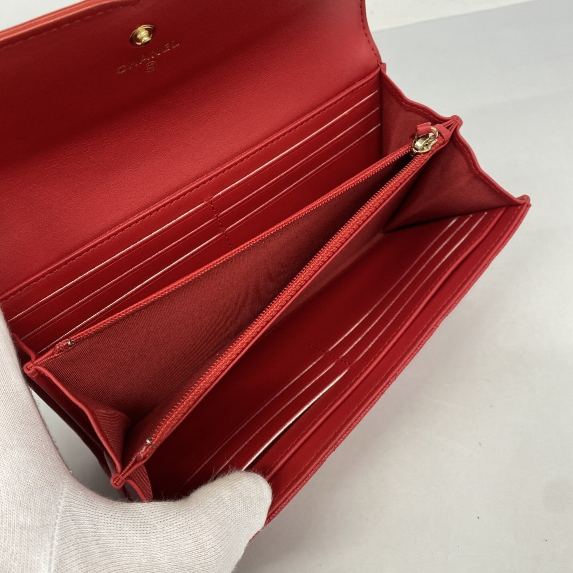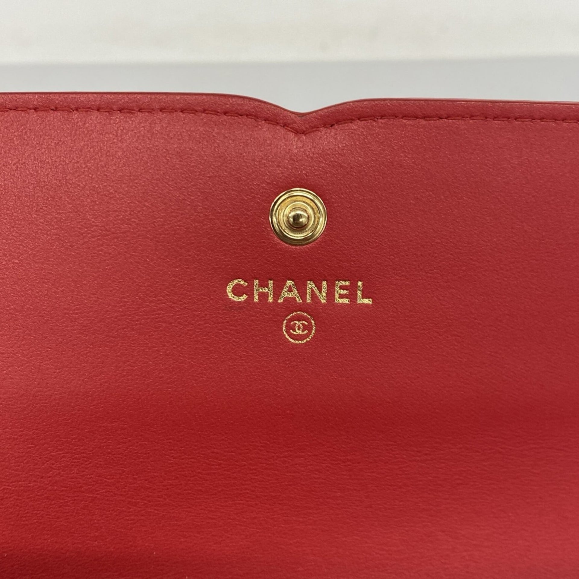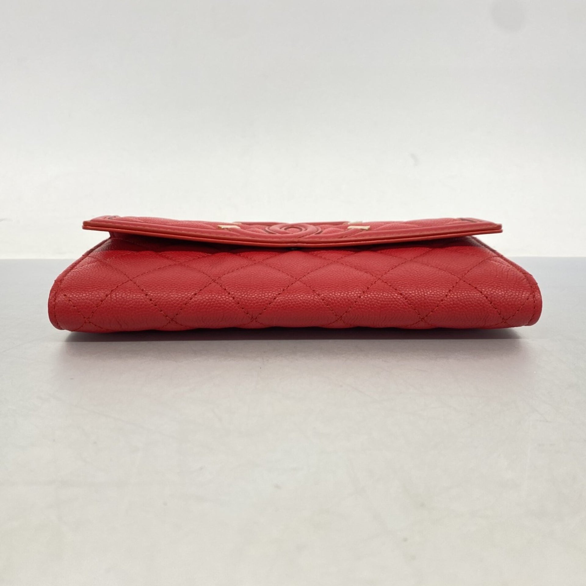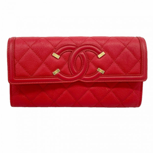 Chanel Long Wallet CC Filigree Caviar Skin Red Champagne Women\'s