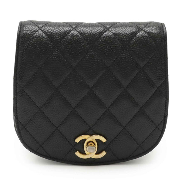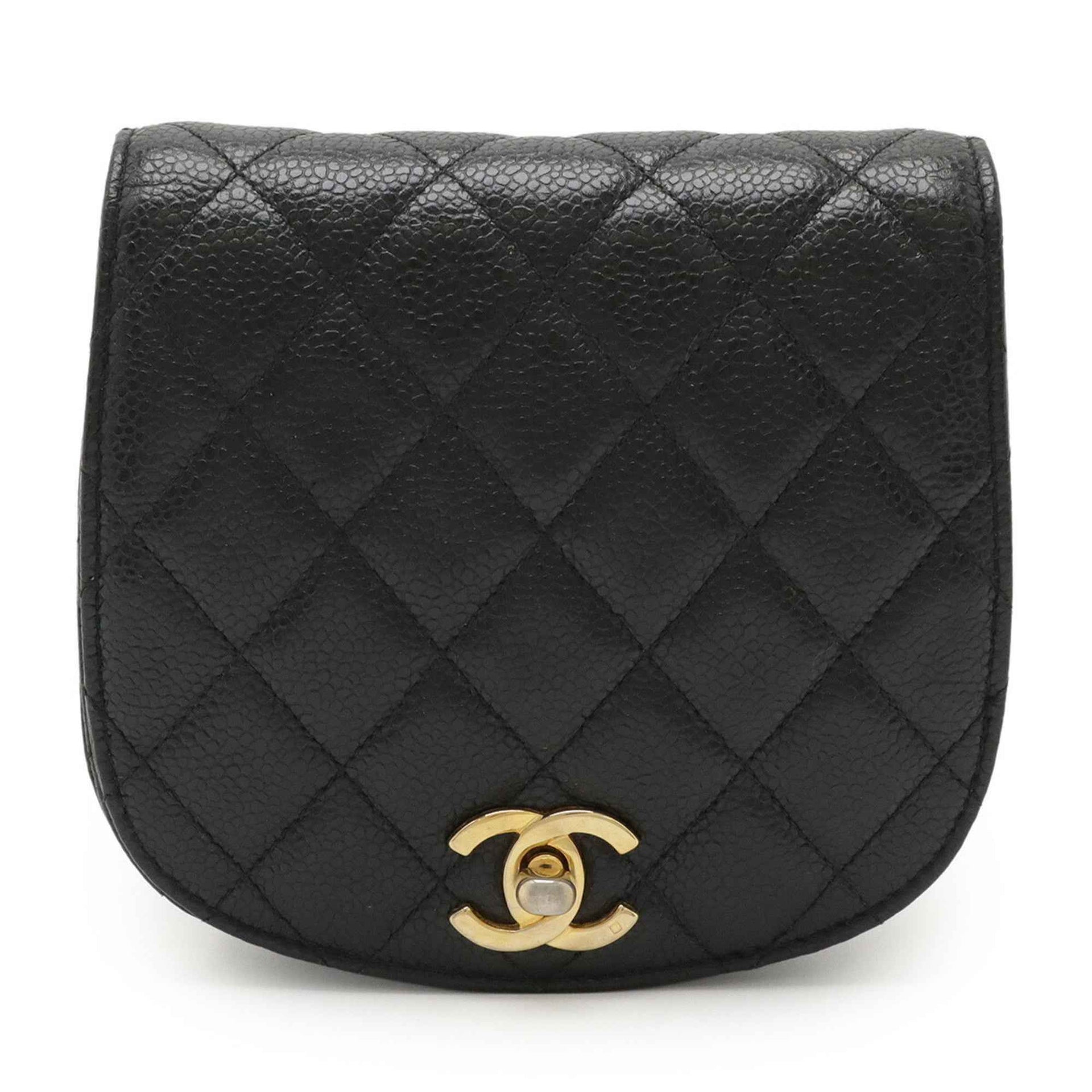CHANEL Matelasse Belt Bag, Waist Pouch, Body Caviar Leather, Black, #75