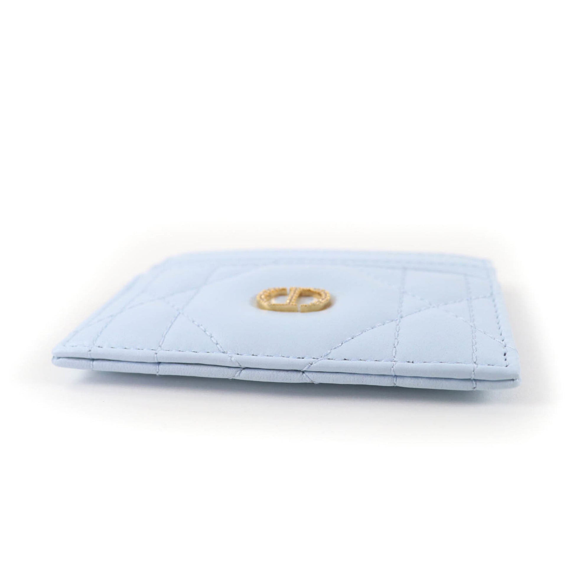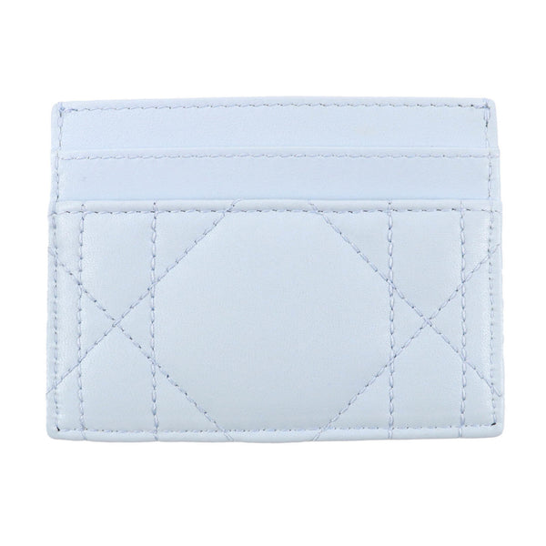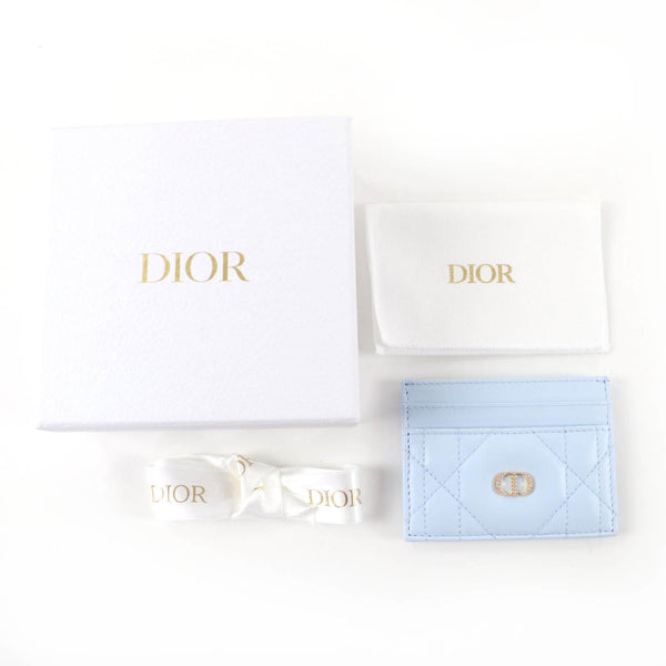 Christian Dior 25AW Caro Freesia Crystal Card Holder, Lambskin, Light Blue, with Box and Dust Bag, Made in Italy, Women\'s.