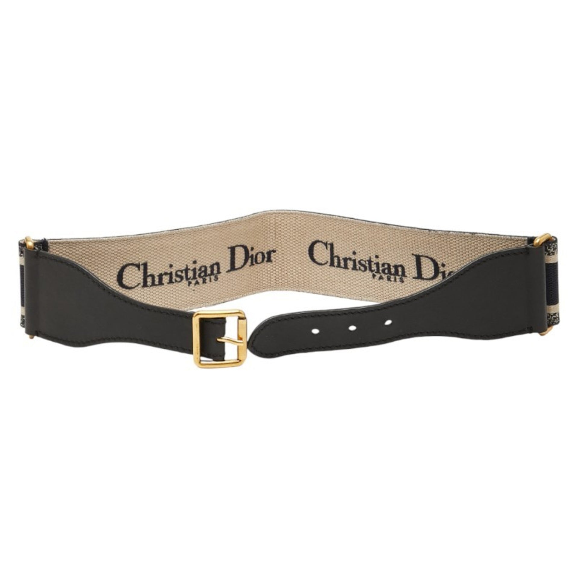 Christian Dior Dior Belt Size: 75 Navy Beige Canvas Leather Women\'s