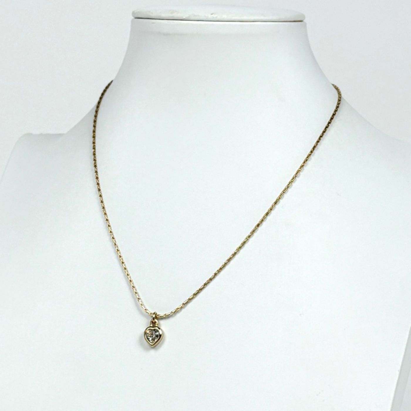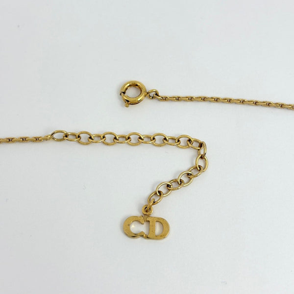 Christian Dior Logo Rhinestone Necklace, Heart Motif GP Gold, Women\'s