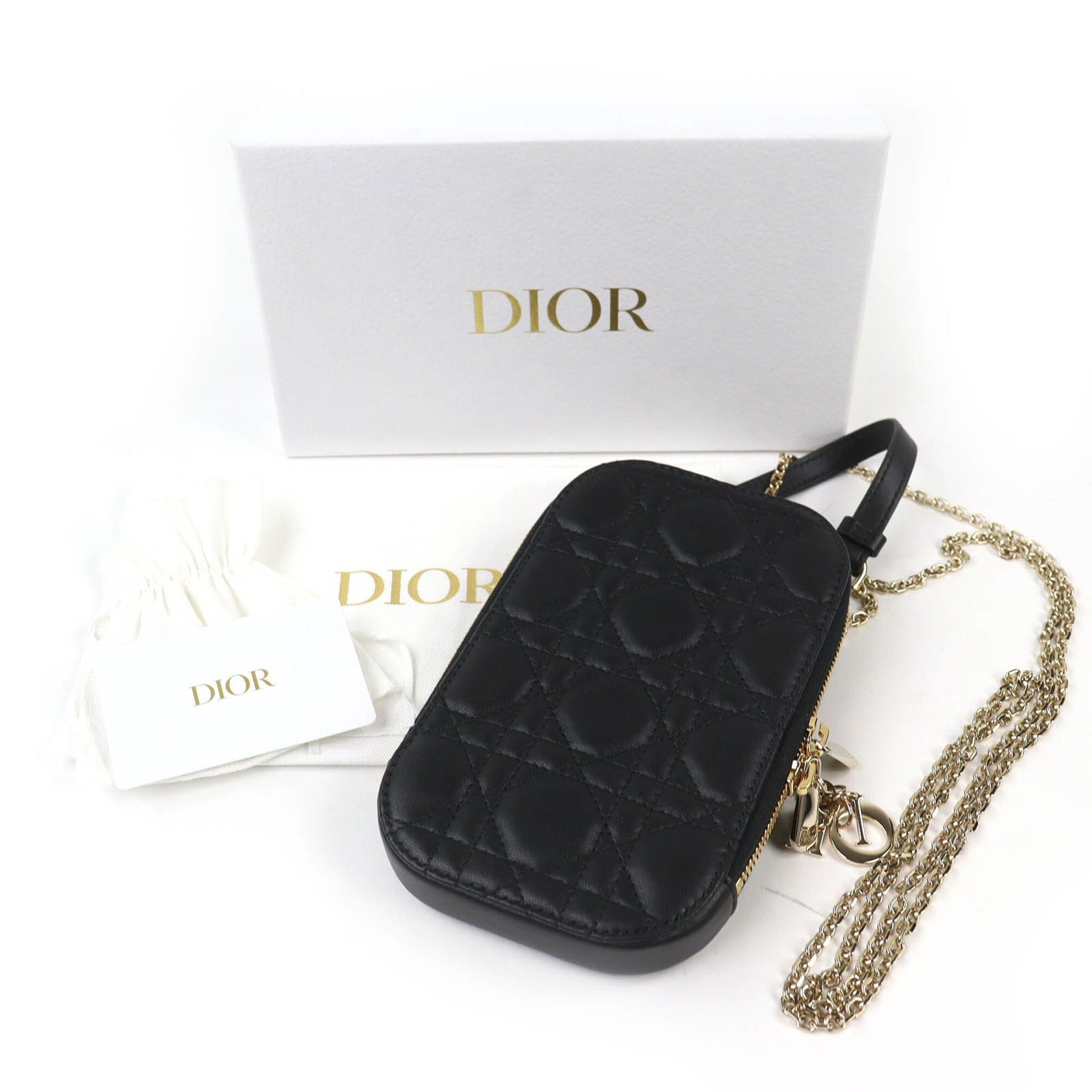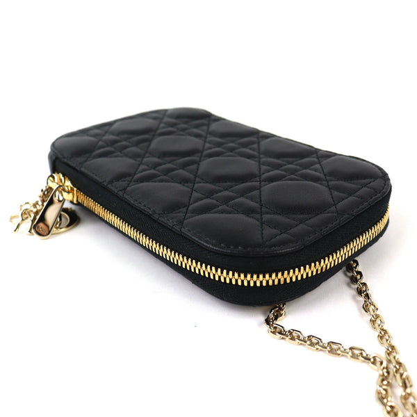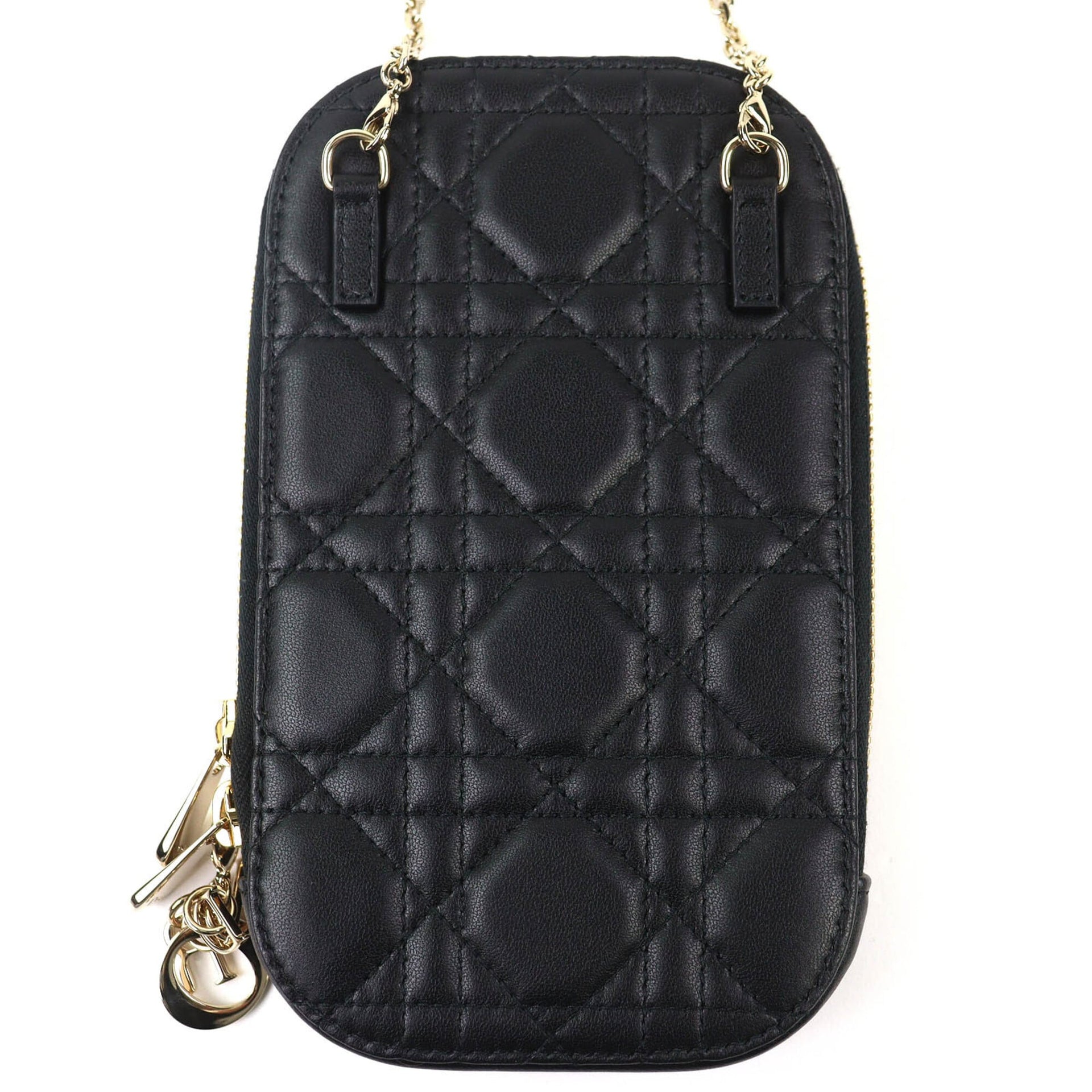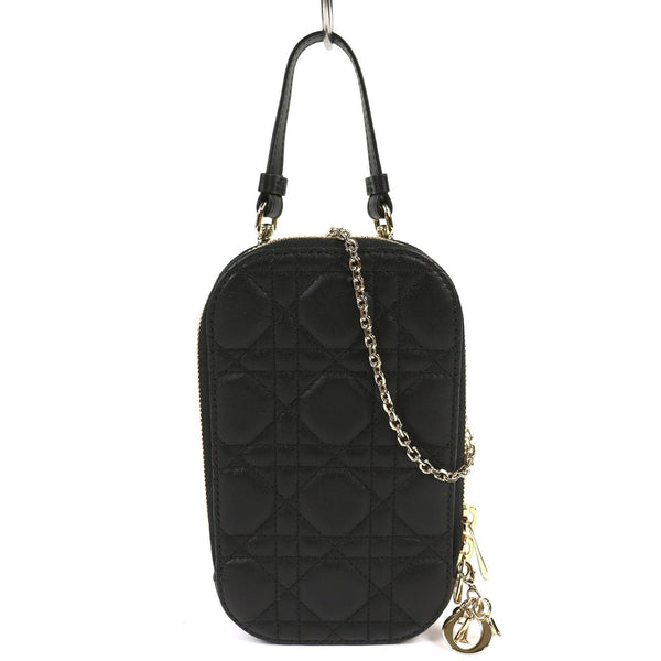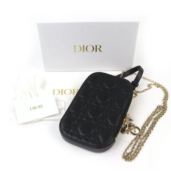 Christian Dior S0872ONMJ Lady Cannage Phone Pouch, Lambskin, Black, Gold Hardware, Made in Italy, Women\'s.