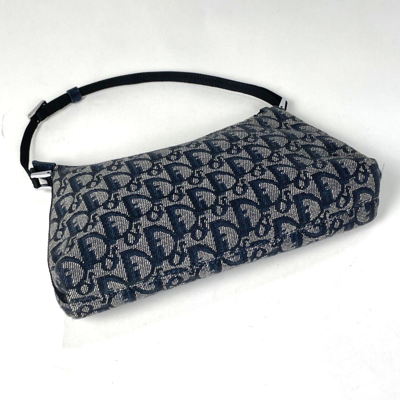 Christian Dior Trotter Pattern Handbag, Pouch, Shoulder Bag, Canvas, Navy, Women\'s