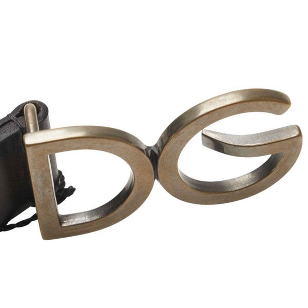 Dolce & Gabbana DG Logo Belt 95.38 BC3981 Black Leather Men\'s DOLCE&GABBANA