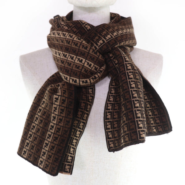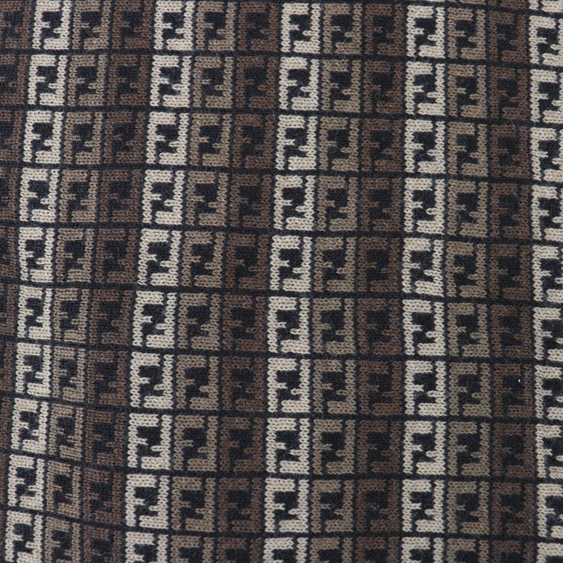 FENDI 100% Wool FF Logo Micro Zucca Pattern Knit Scarf, Brown, Made in Italy, Women\'s & Men\'s