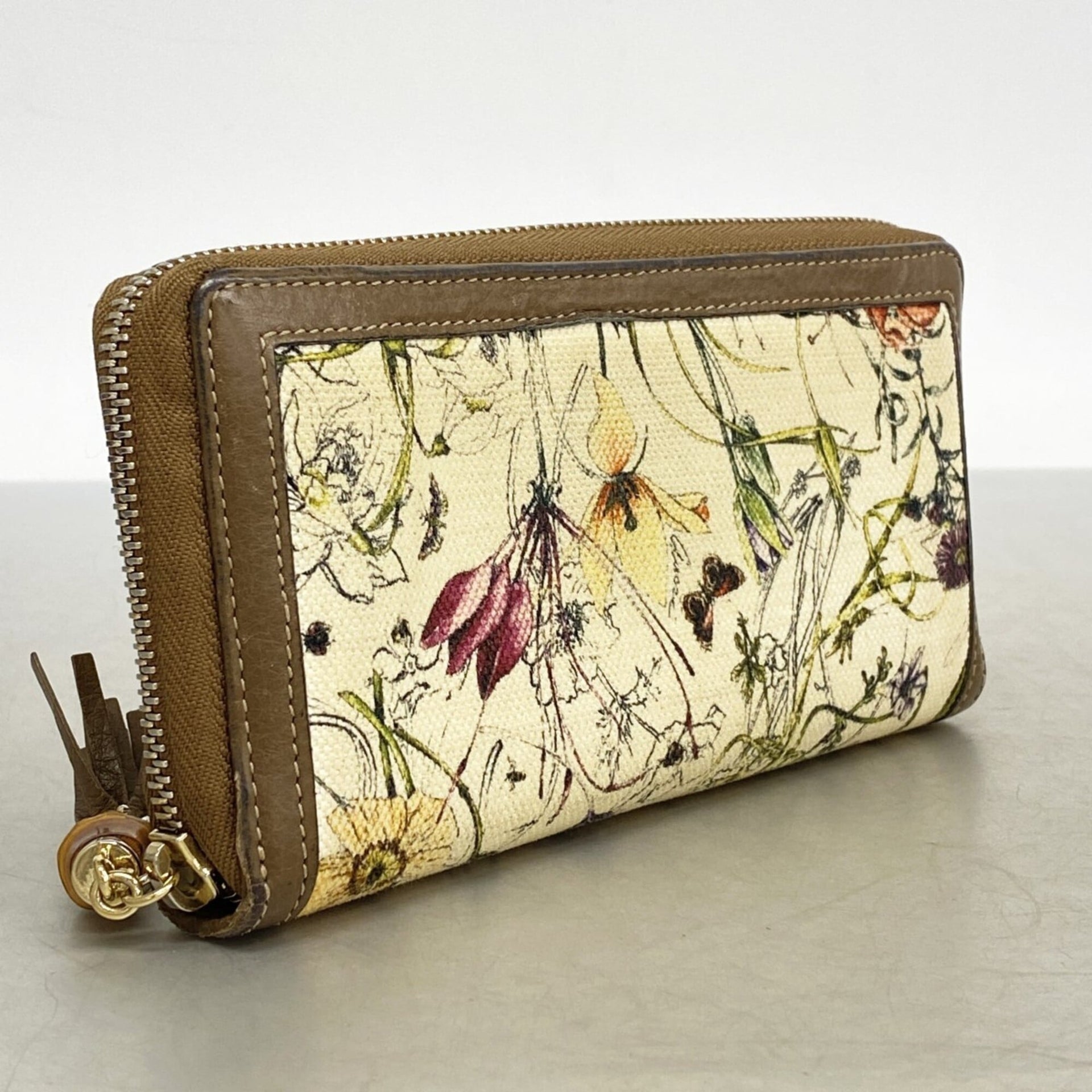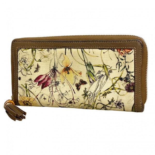 Gucci Bamboo Flora Long Wallet 307984 Canvas Beige Brown Champagne Women\'s