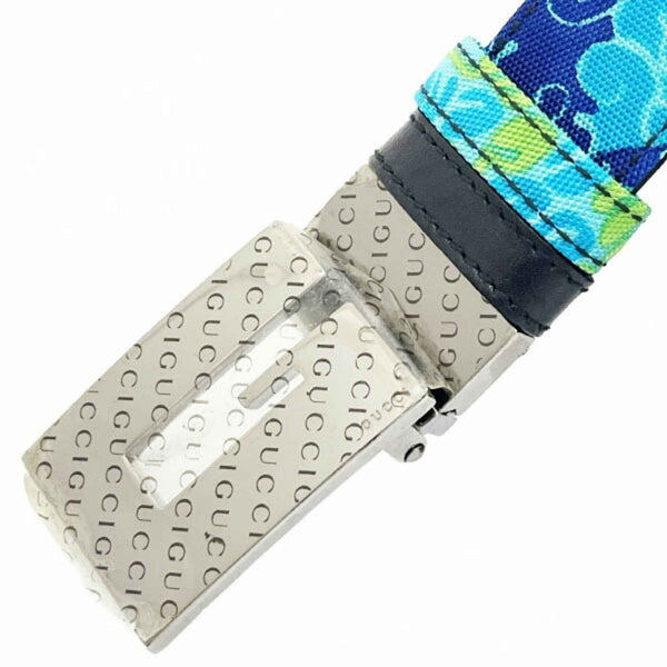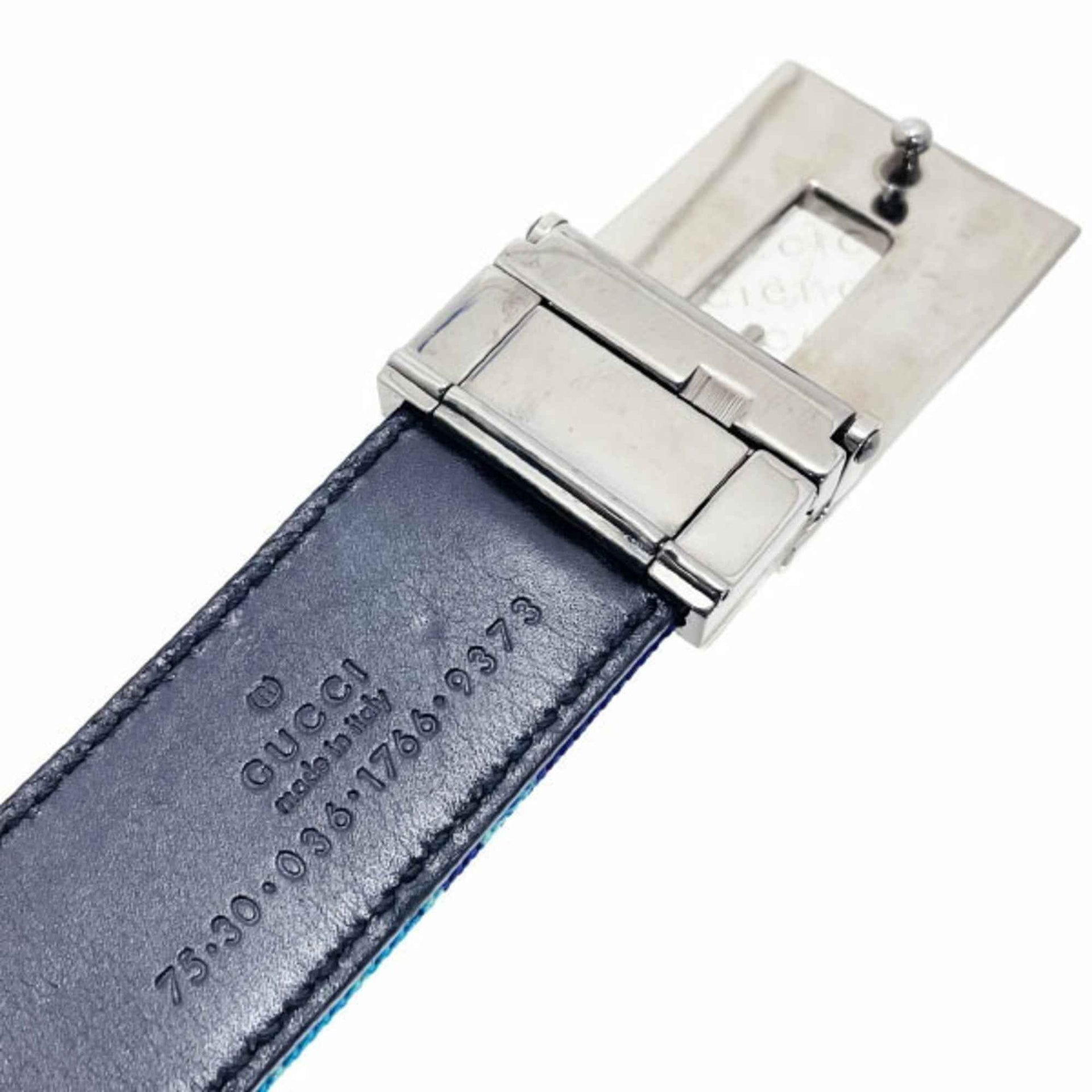 Gucci G Belt for Women, Nylon Canvas, Leather, Blue, Multicolor, Black, Size 75cm, 036 1766, GUCCI Mark, Buckle, Hardware, HH-16006