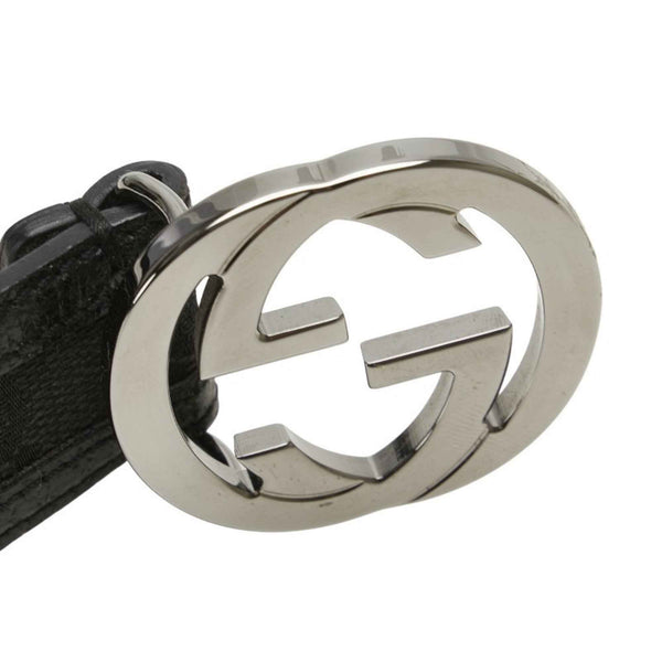 Gucci GG Canvas Interlocking G Belt 80.32 114874 Black Silver Leather Women\'s GUCCI