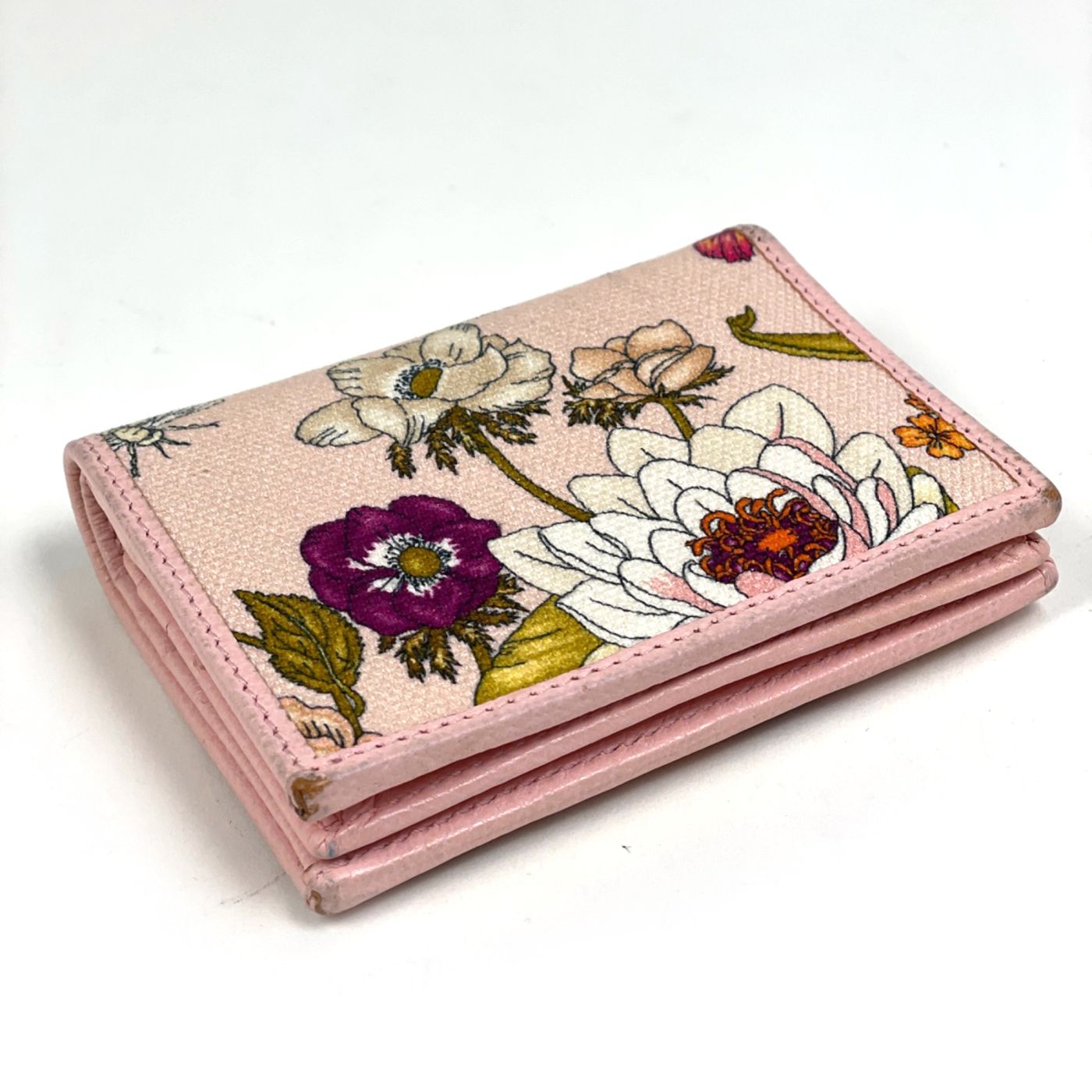Gucci GG Marmont Flora Bi-fold Wallet, Billfold, Coin Purse, Canvas, Pink Multicolor, 577347, Women\'s