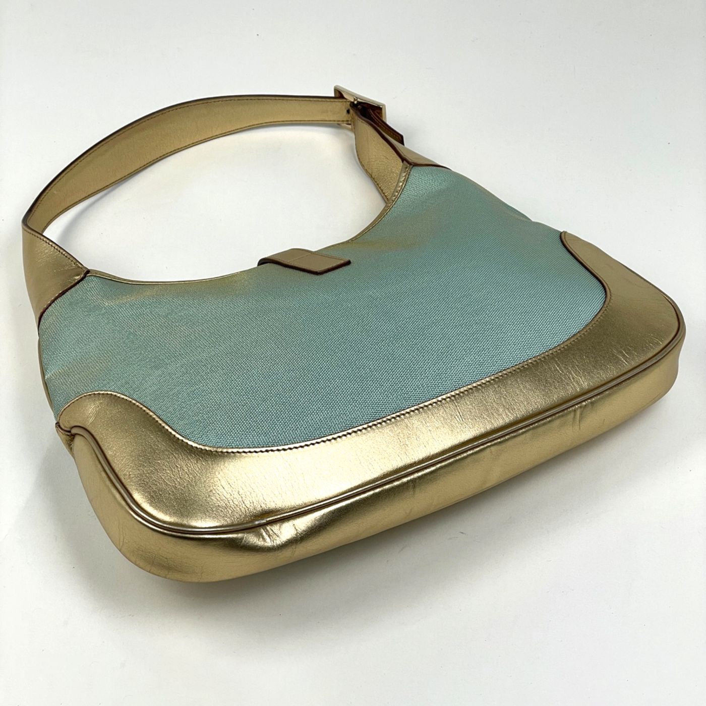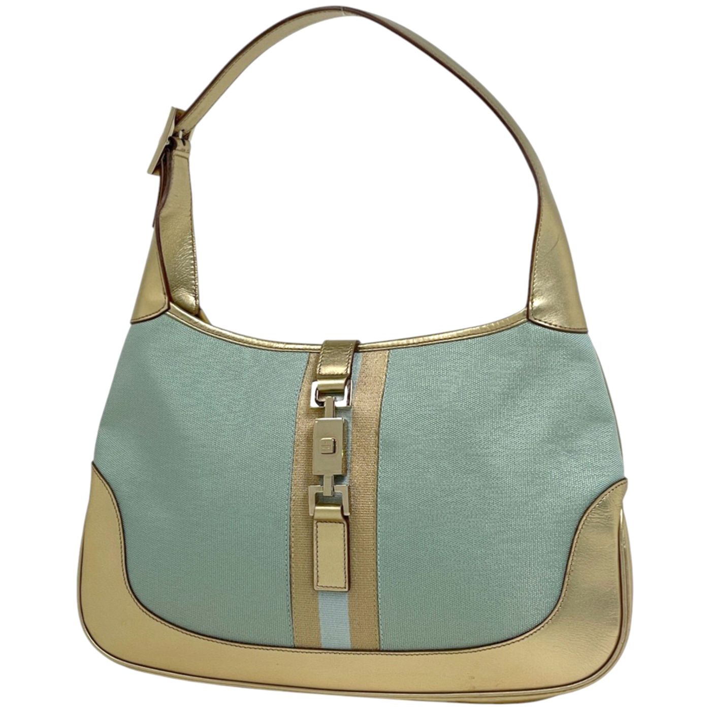 Gucci Jackie Line Shoulder Bag, Handbag, Canvas, Gold and Light Blue, 0013306, Women\'s