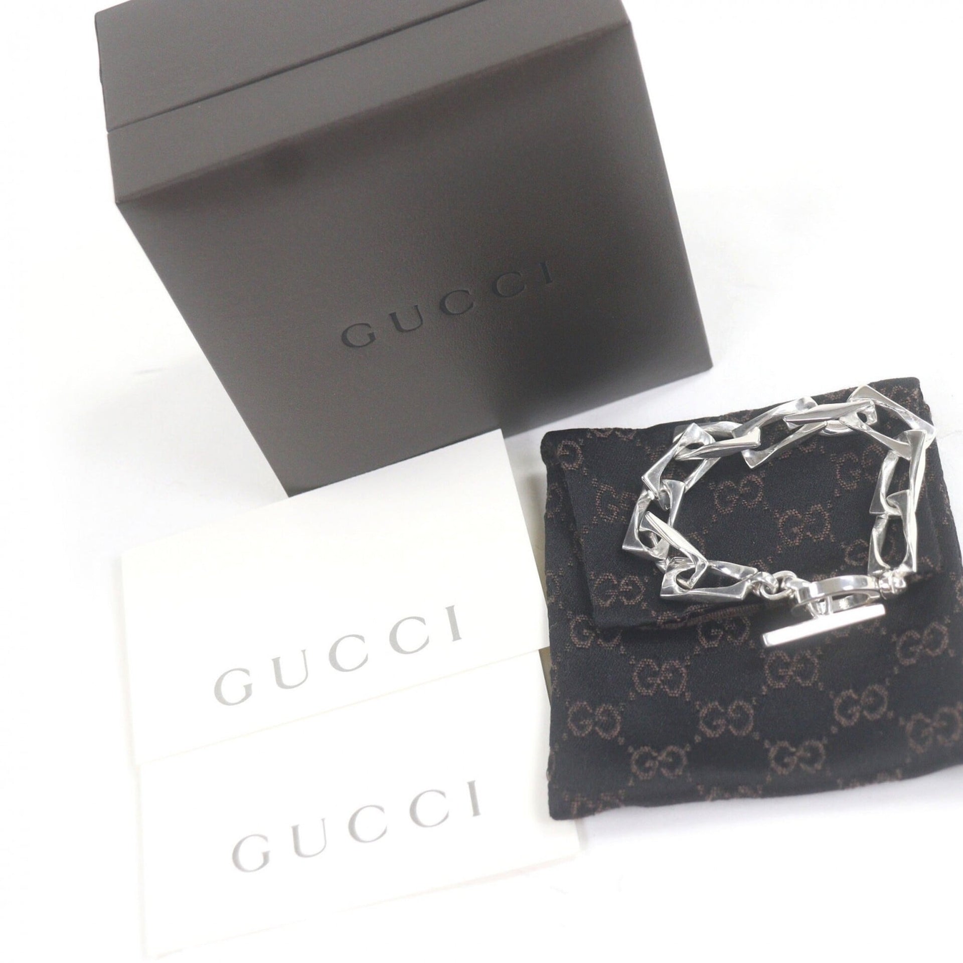 GUCCI Vintage Figaro AG925 Tom Ford Era T-Bar Accessory Bracelet, Silver, with Box and Dust Bag, Made in Italy, Weight 30.96g, Men\'s
