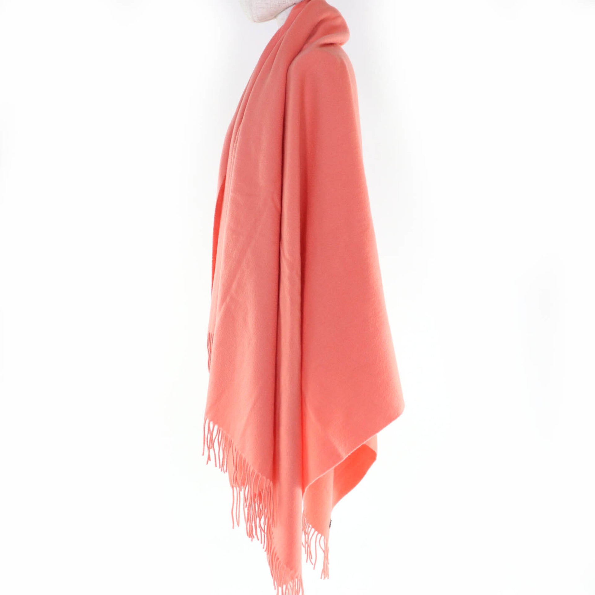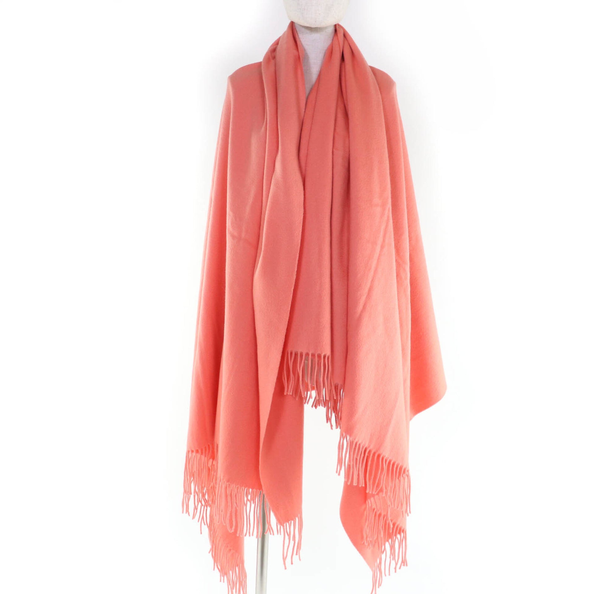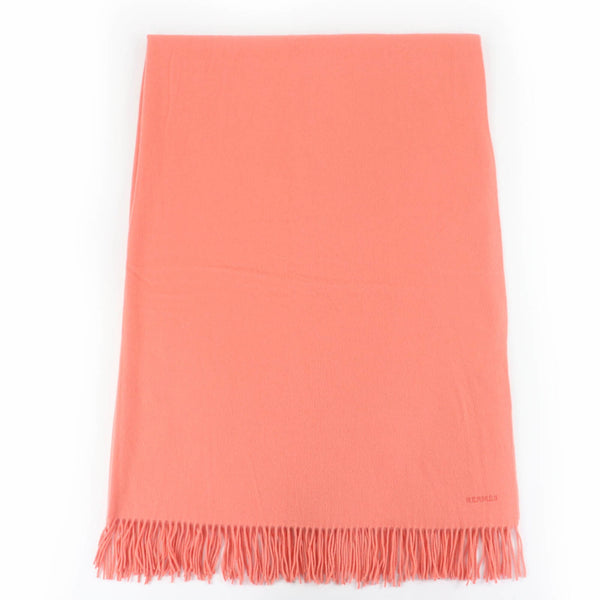 HERMES 100% Cashmere Stole/Shawl/Scarf with Logo Embroidery and Fringe, Extra Large, Coral Pink, for Women