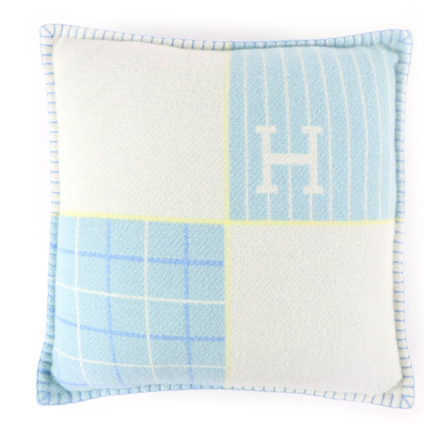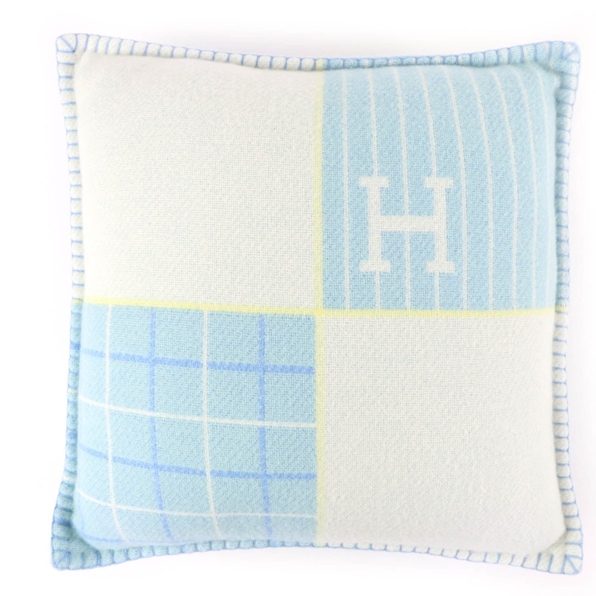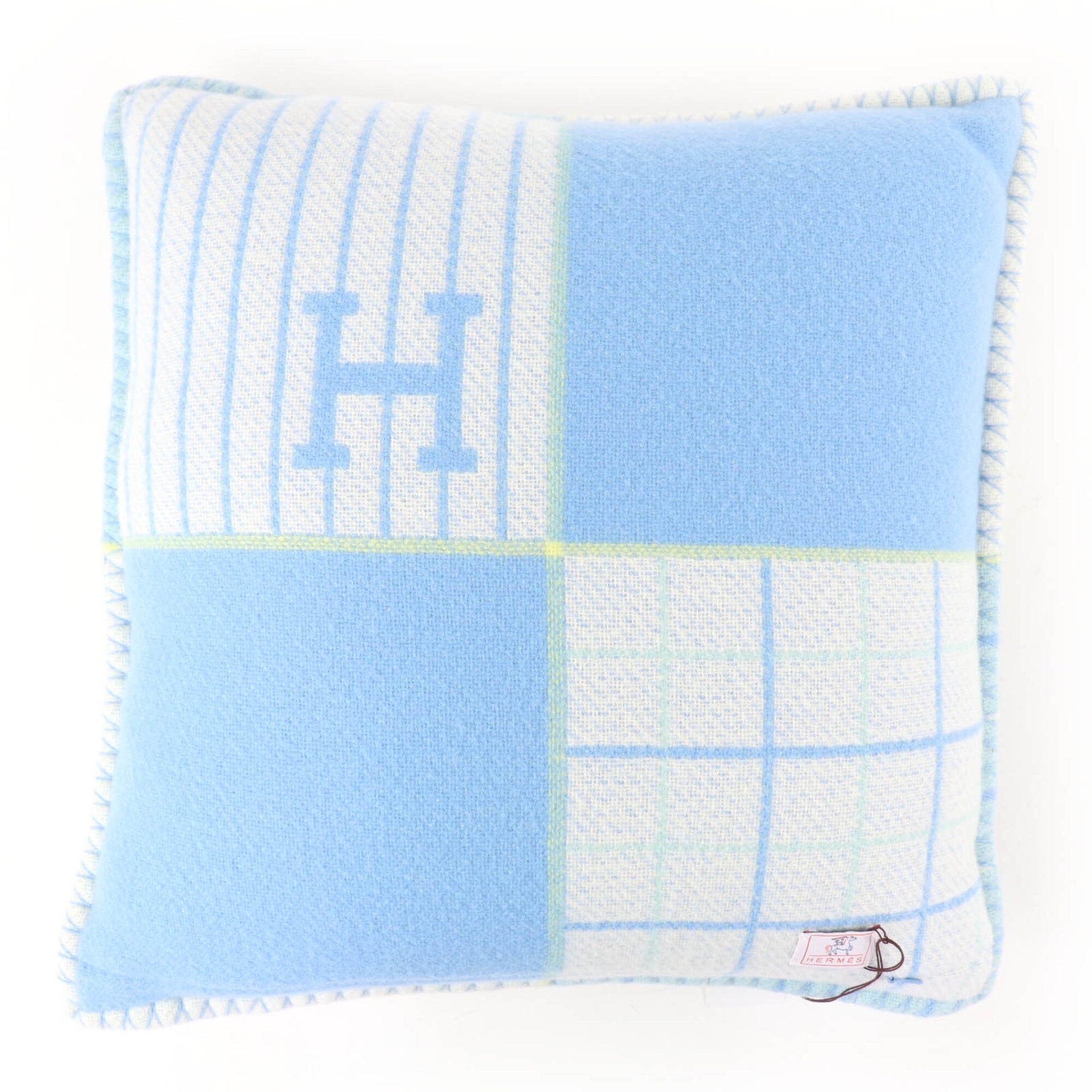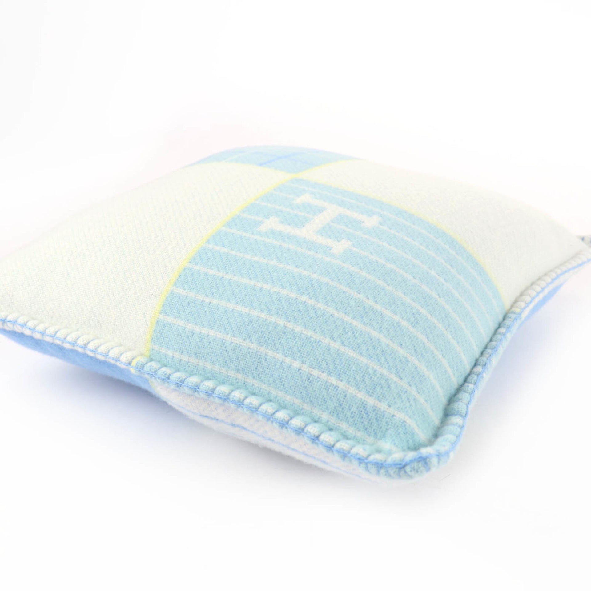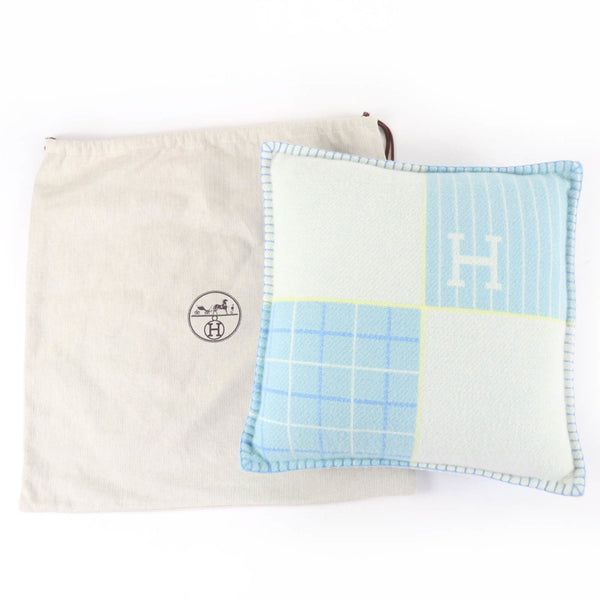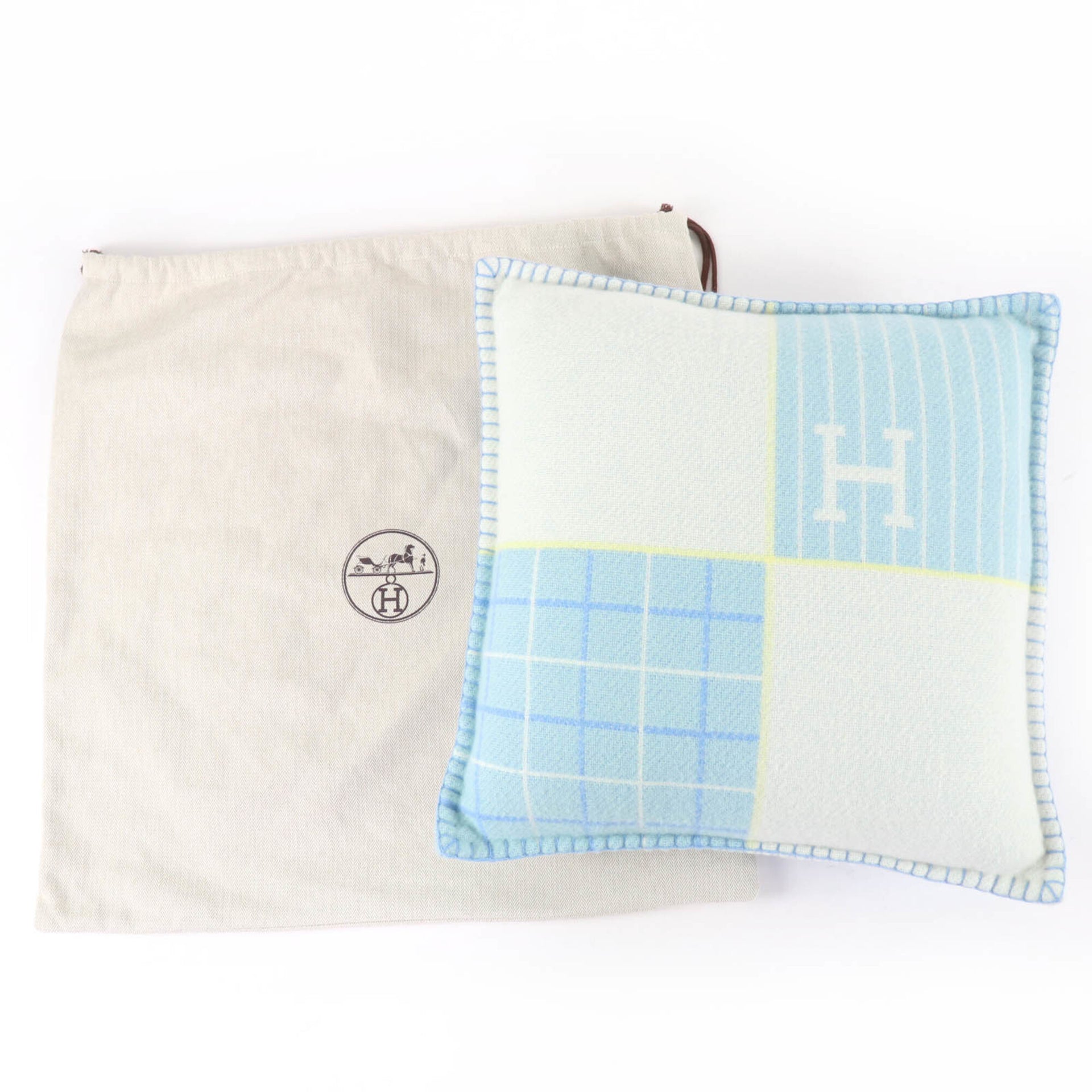 HERMES Avalon Cabriole Wool Cashmere Vert Aqua Current Model with Cushion and Dust Bag Made in England Authentic Women\'s