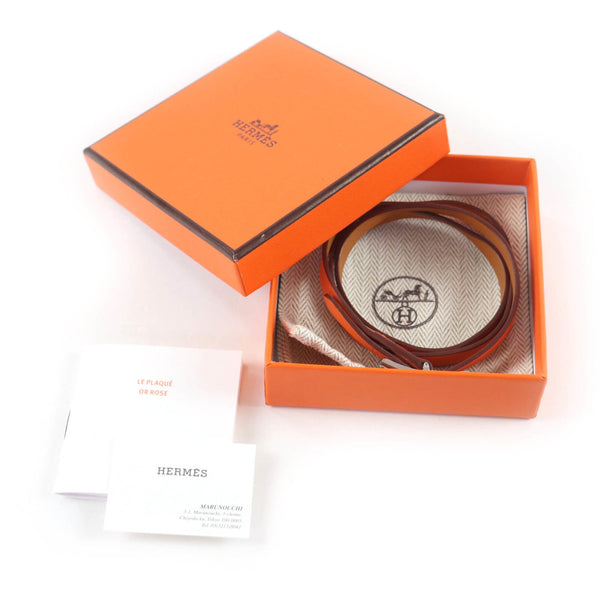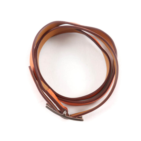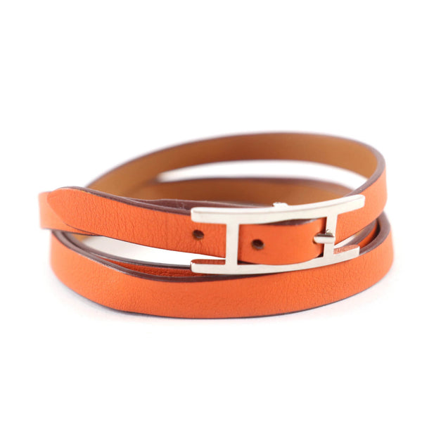 HERMES Be Api Double Tour Gold Orange Silver Hardware Triple Strand Leather Bracelet Z Stamp Comes with Box and Dust Bag Made in France Women\'s