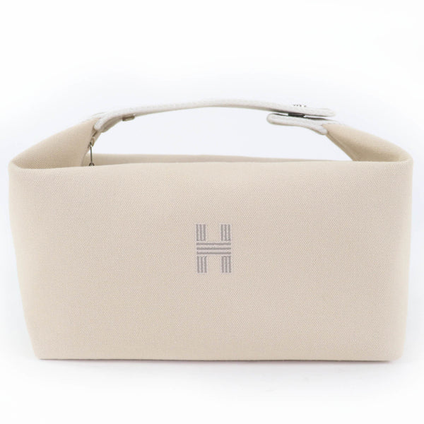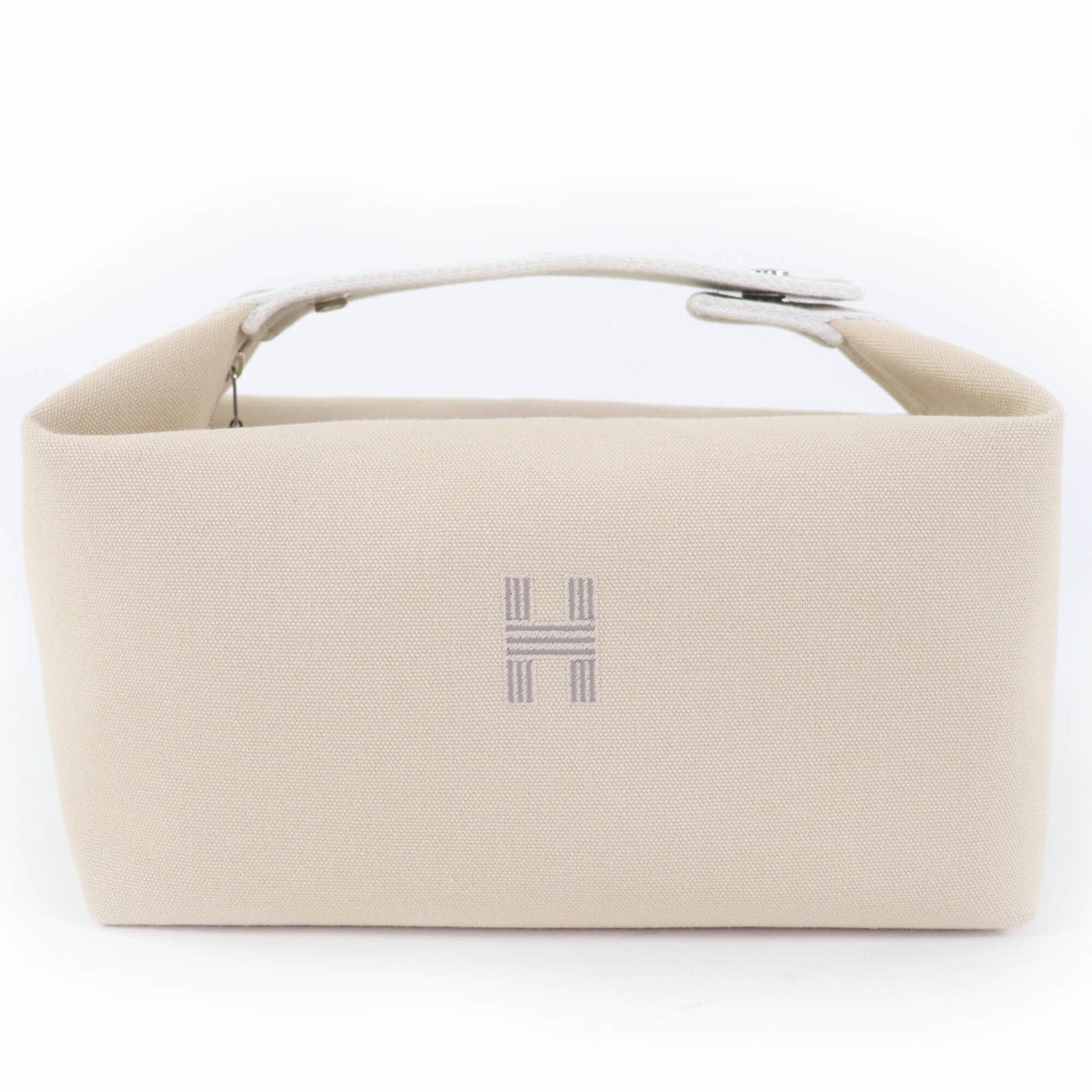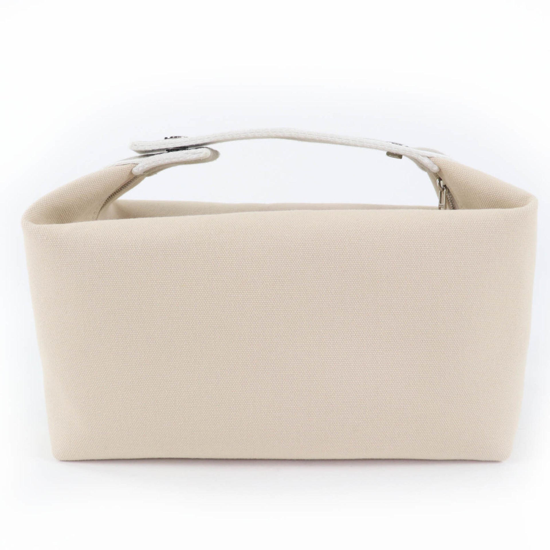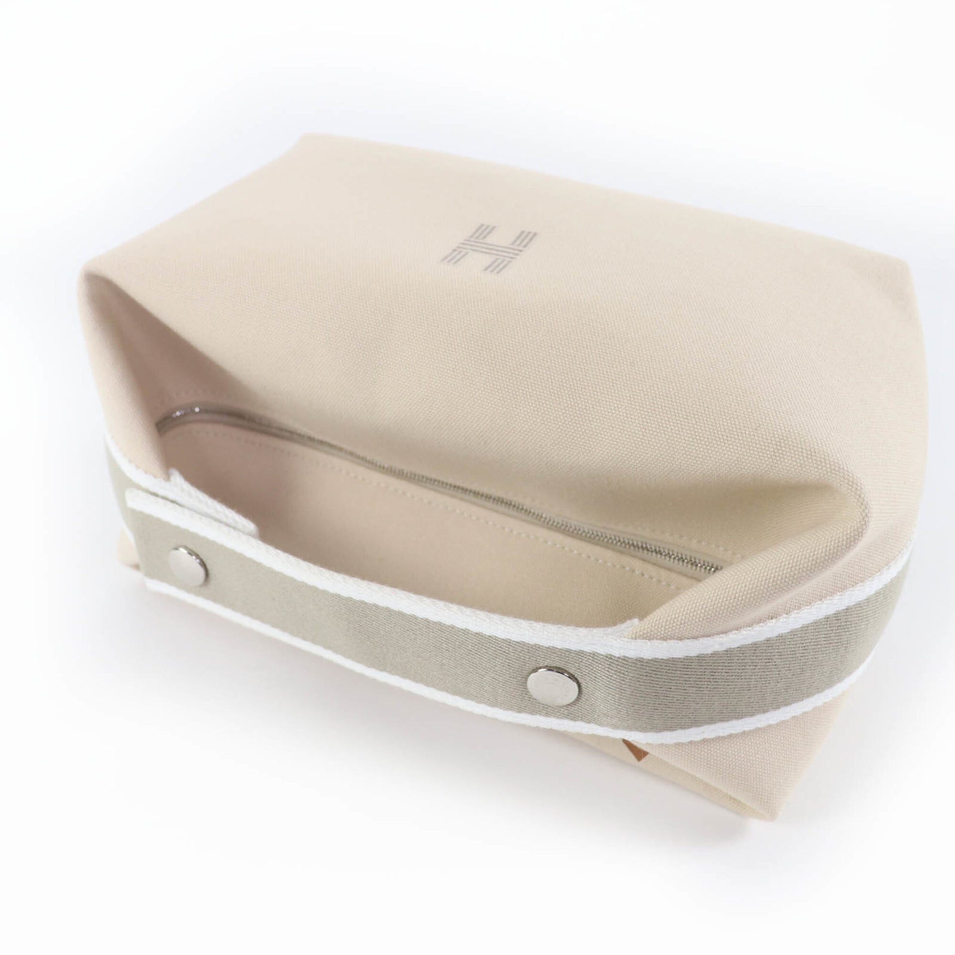 HERMES Bride à Black GM 100% Cotton Canvas Handbag with Silver Hardware (Sellier style) in Ivory, Made France, Women\'s