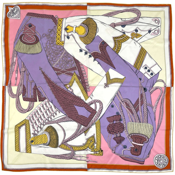 Hermes Carre 90 Zouaves et Dragons (Zouaves Dragons) Silk Scarf/Muffler in Orange Multicolor for Women