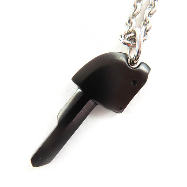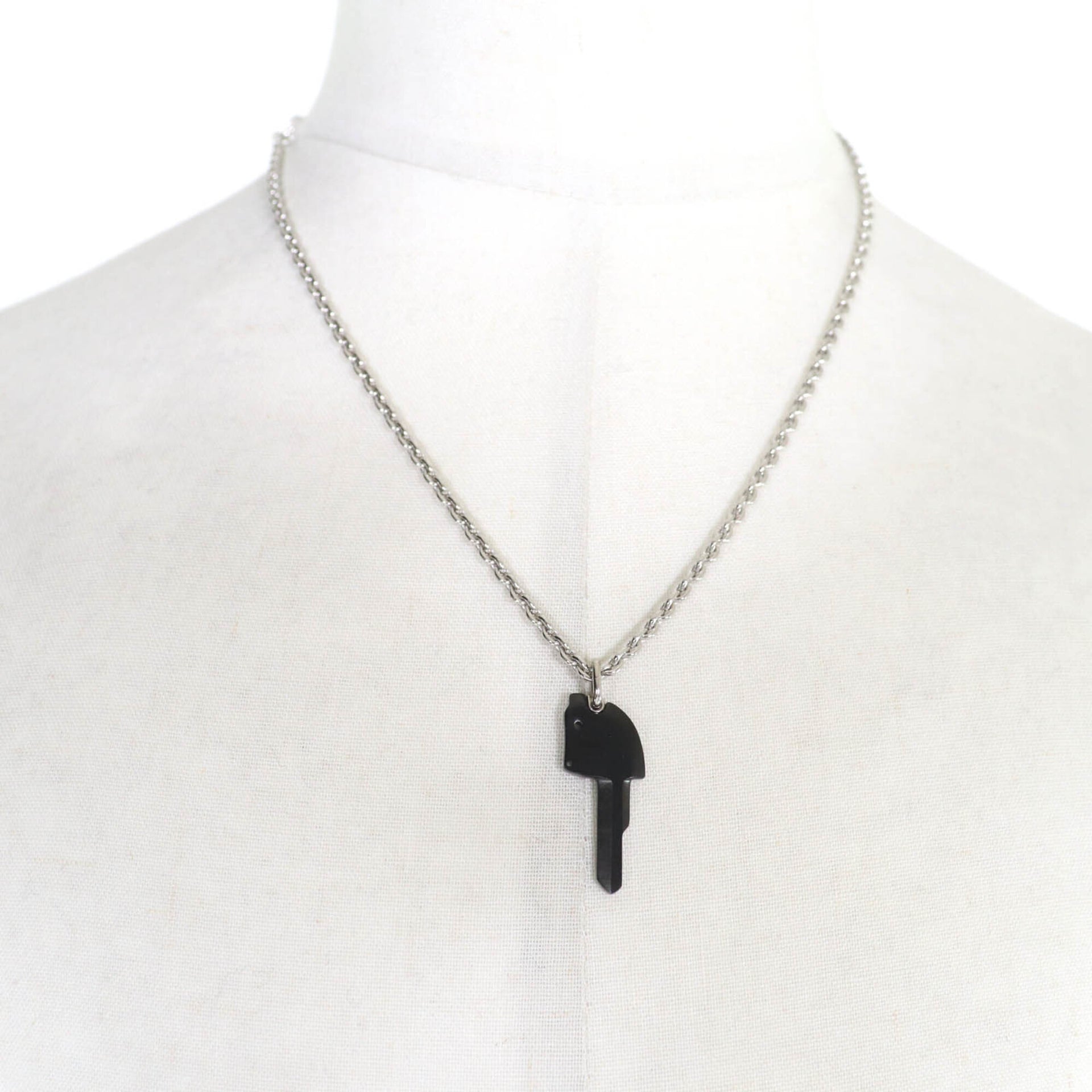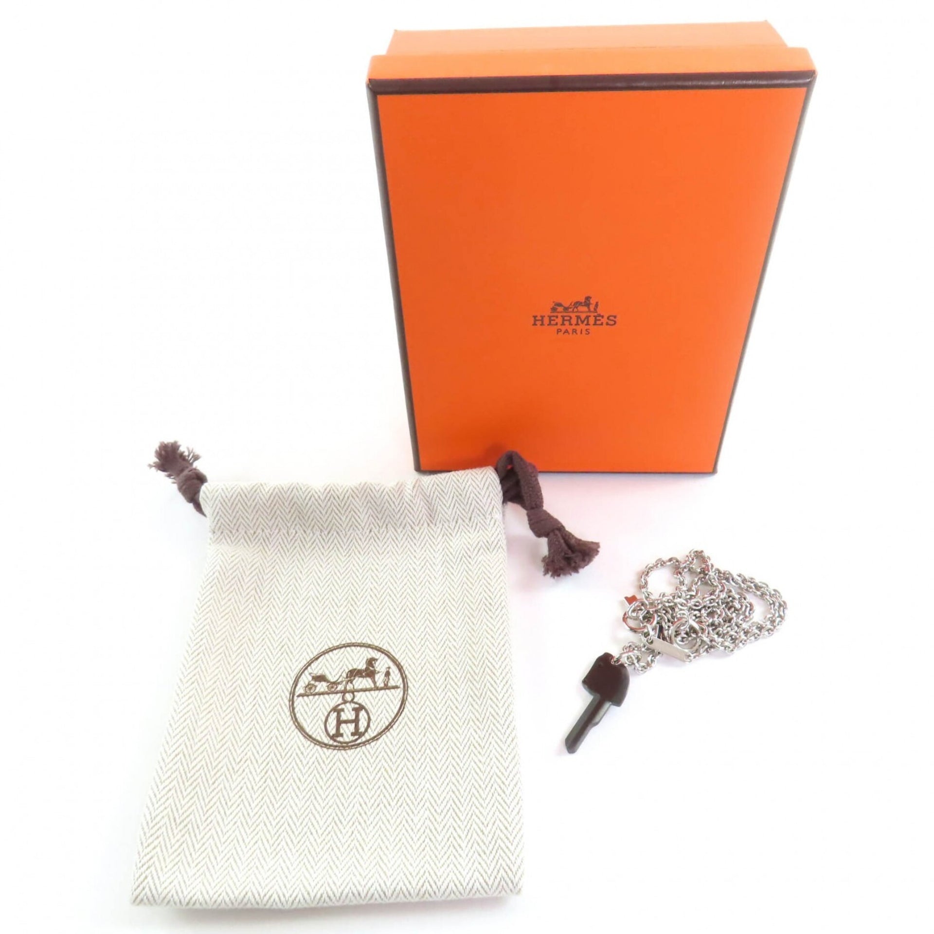 HERMES Clé Cheval Necklace, Metal Pendant Silver & Black, with Box Dust Bag, Made in France, Men\'s