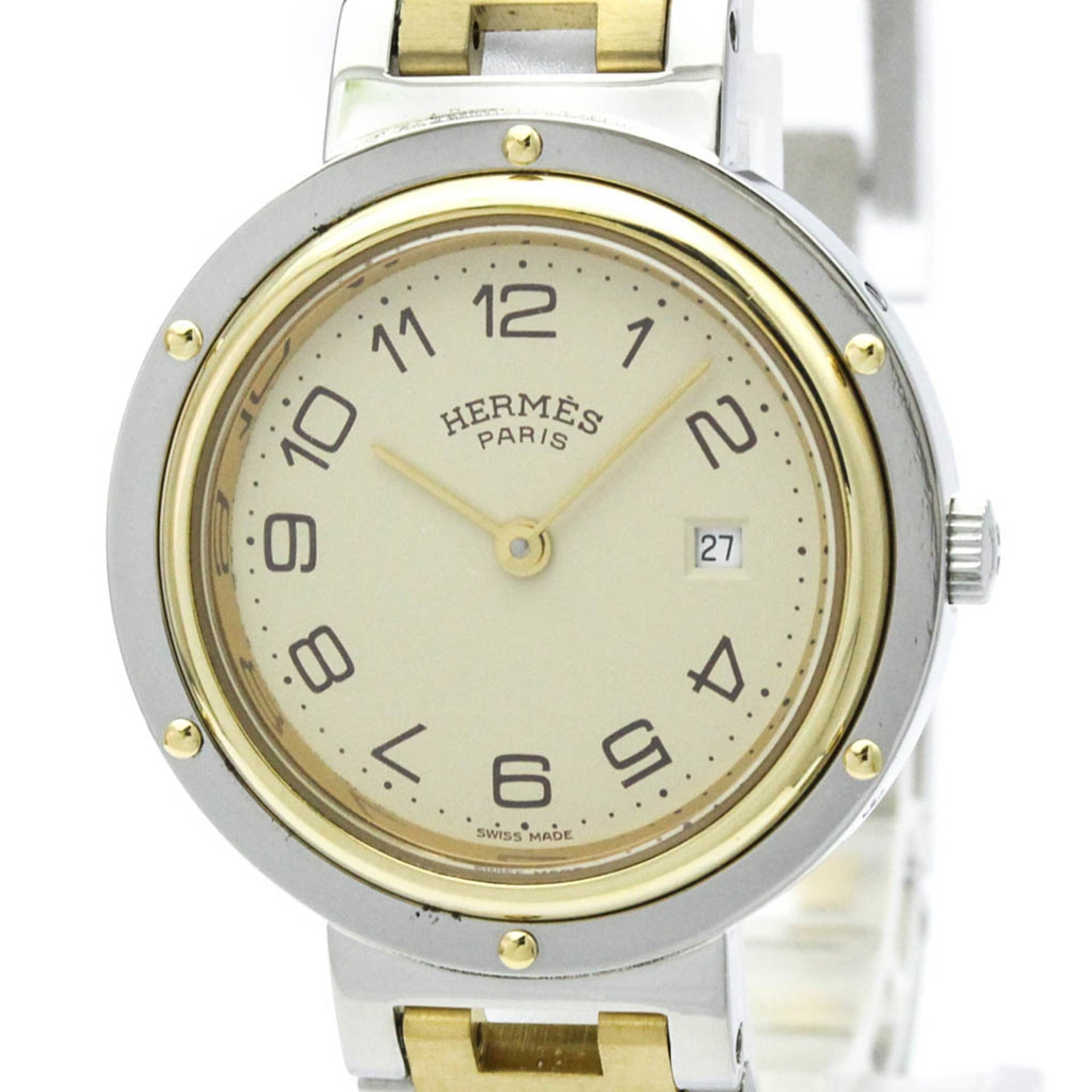 HERMES Clipper Gold Plated Stainless Steel Quartz Unisex Watch Polished