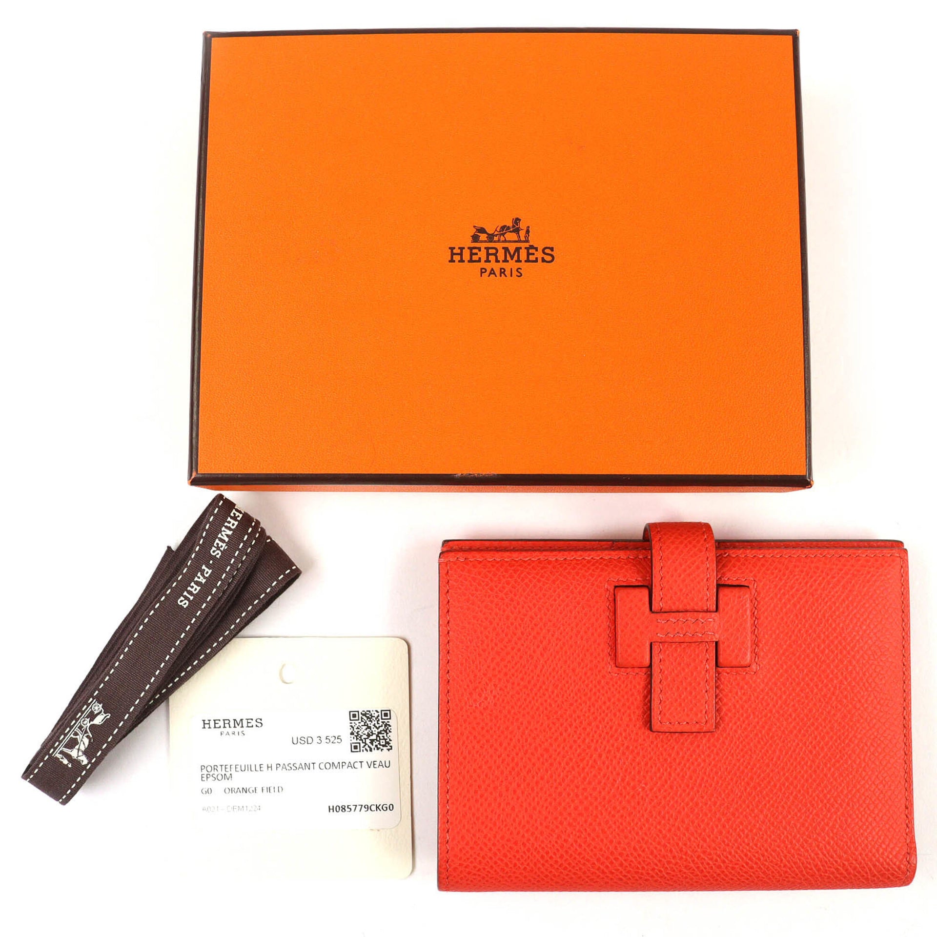 HERMES H085779CKG0 New H Passant Veau Epsom Orangefield Silver Hardware Compact Bi-fold Wallet W Stamp Box Included Made in France Women\'s