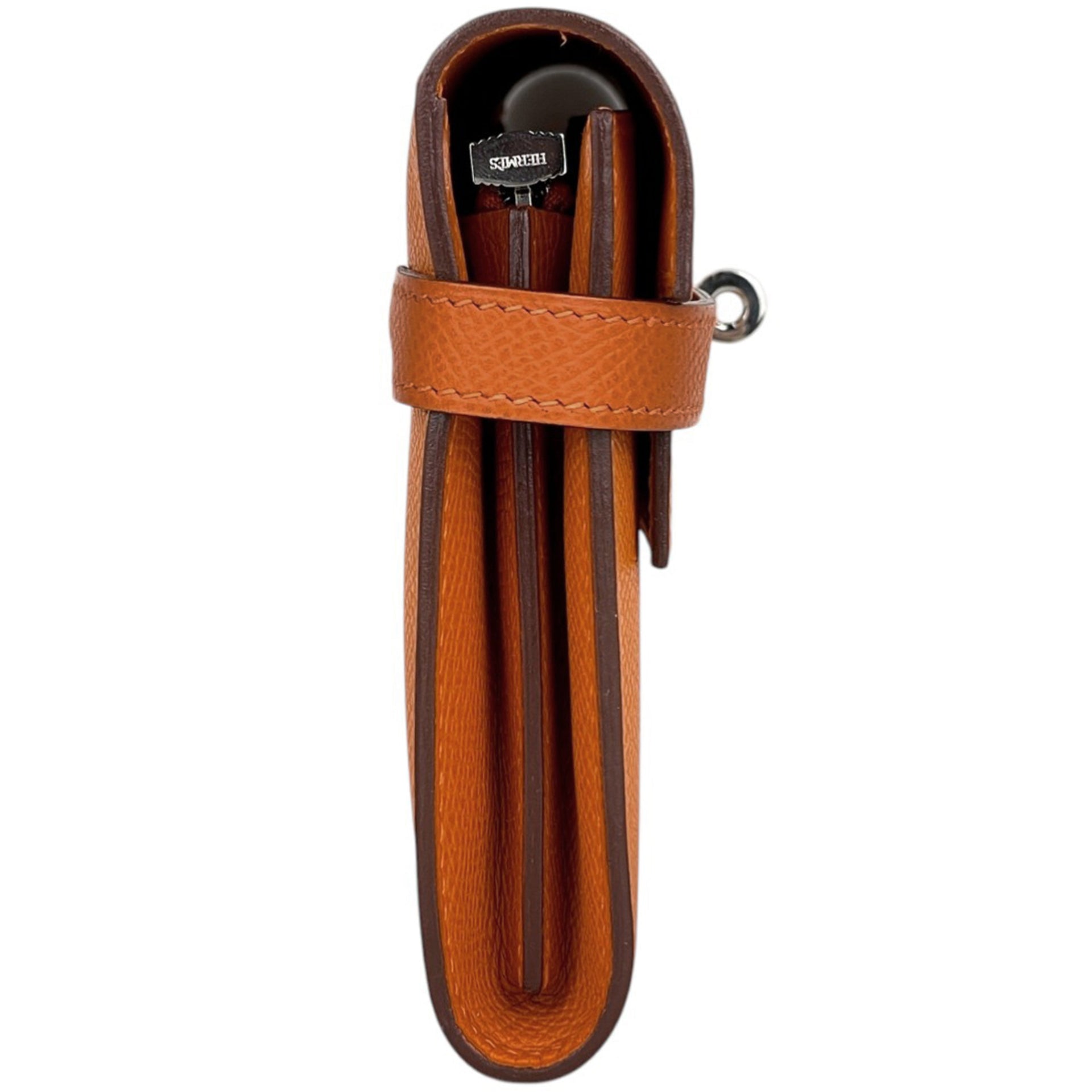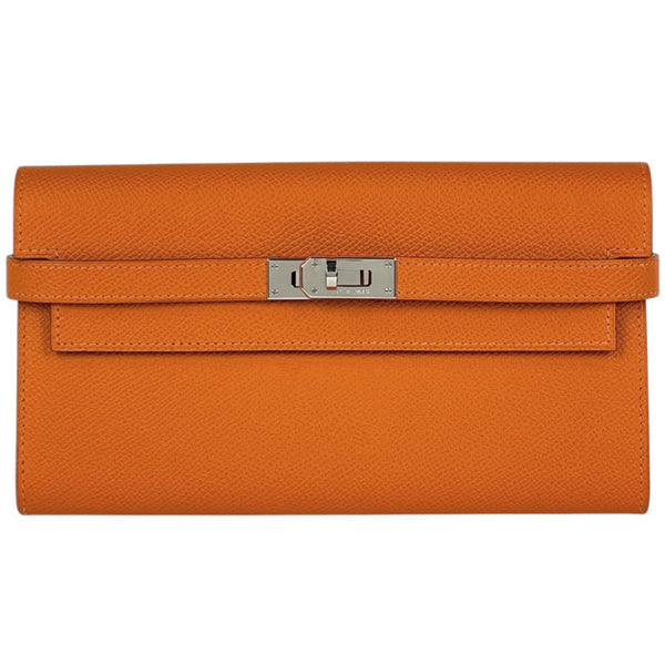 Hermes Kelly Wallet Long Bi-fold Wallet, Veau Epsom Leather, Orange, □K, Women\'s