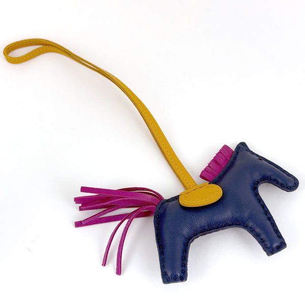 Hermes Rodeo PM Bag Charm, Leather, Navy, Yellow, Purple, Women\'s