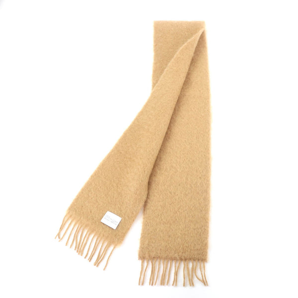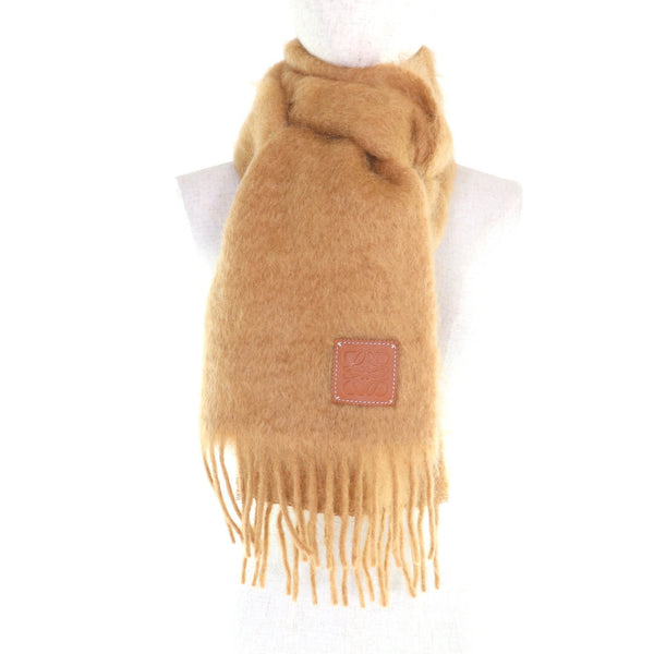 LOEWE 28003861 Mohair and Wool Blend Scarf with Anagram Leather Patch, Fringe, Brown, Made in Spain, Authentic, Women\'s