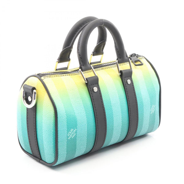 Louis Vuitton Keepall XS Handbag, Coated Canvas and Leather, Damier Stripe Pattern, Women\'s, Green, Yellow, Black, M59949