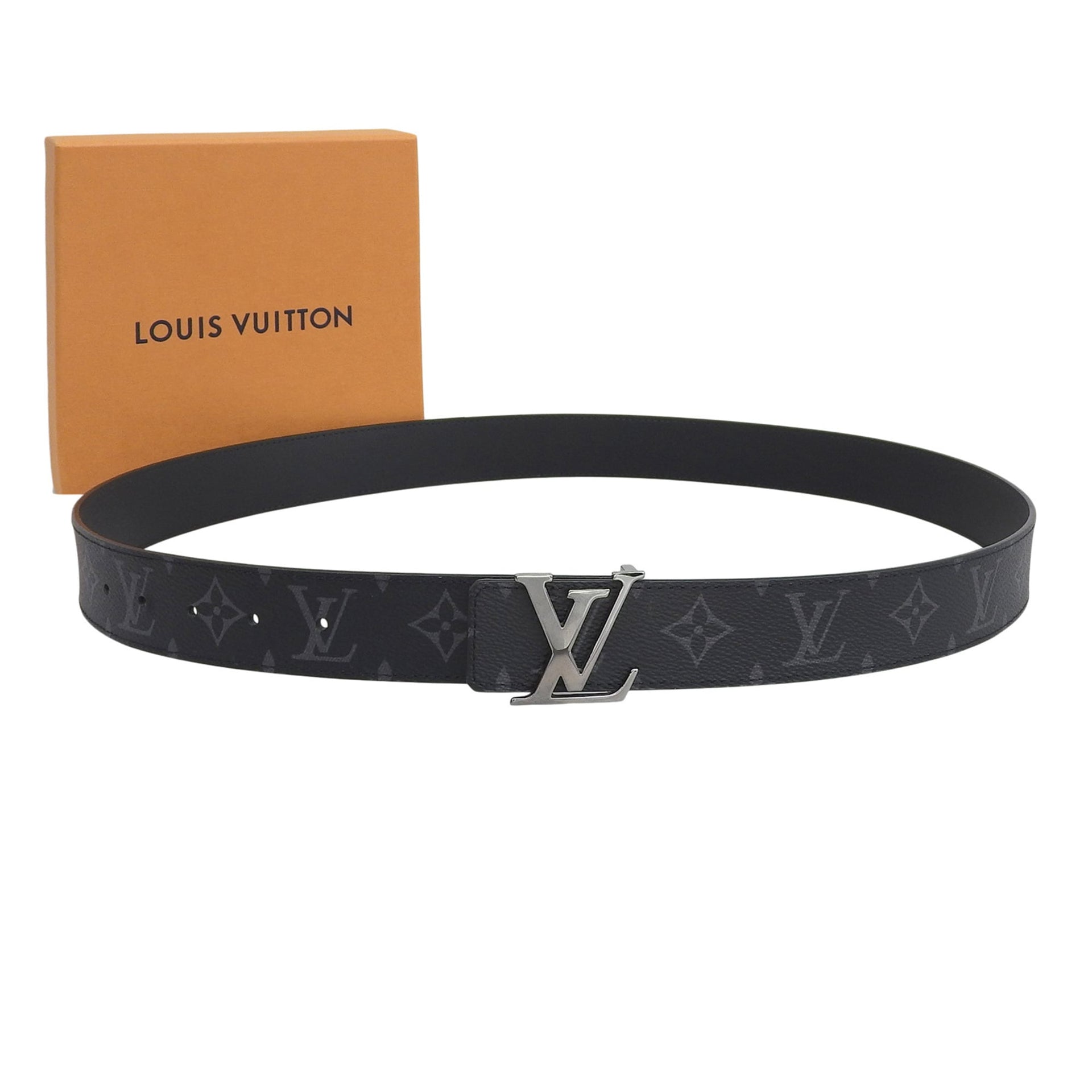 LOUIS VUITTON M0450 Ceinture LV Initials Reversible Monogram Eclipse Canvas Leather Belt 100 40 with Box Made in Spain Men\'s