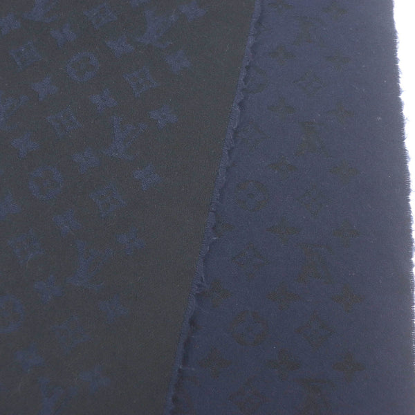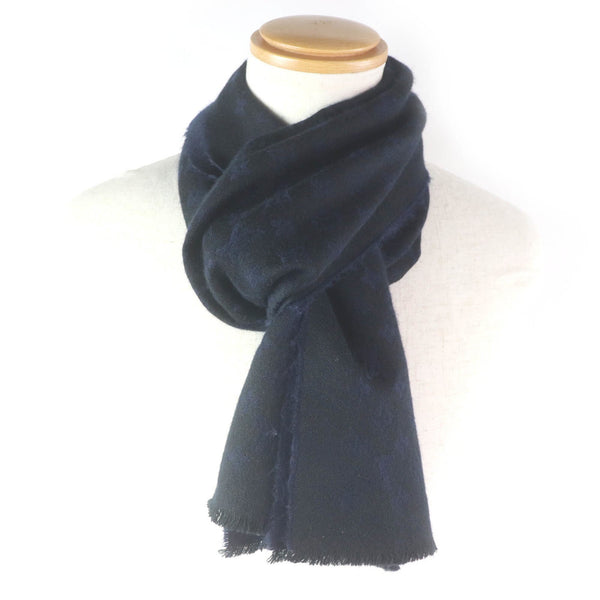 LOUIS VUITTON M71615 100% Cashmere Monogram Pattern Fringe Stole/Scarf, Black/Navy, Made in Italy, Authentic, Men\'s