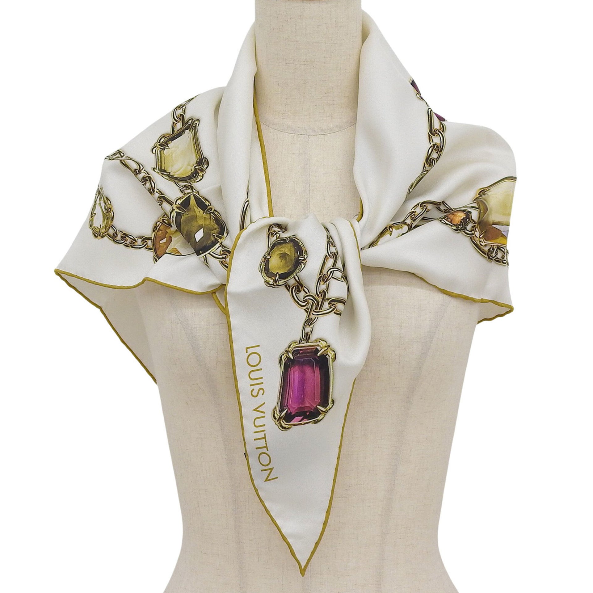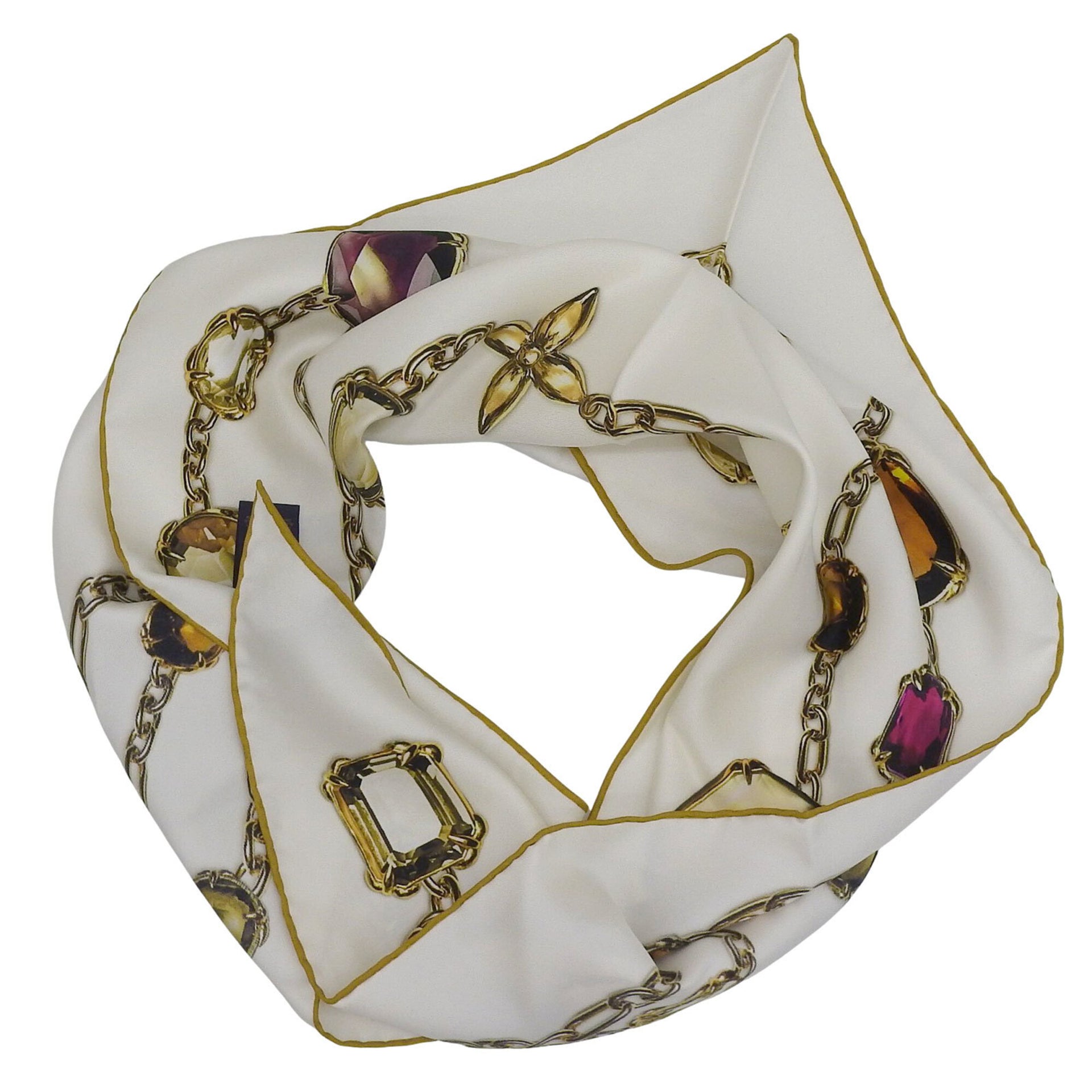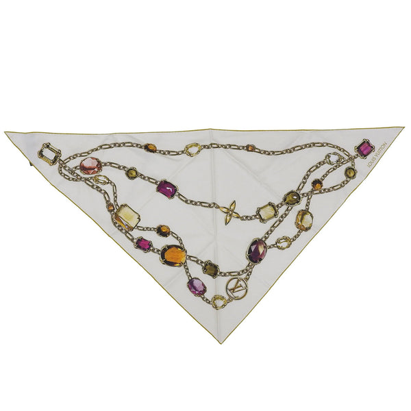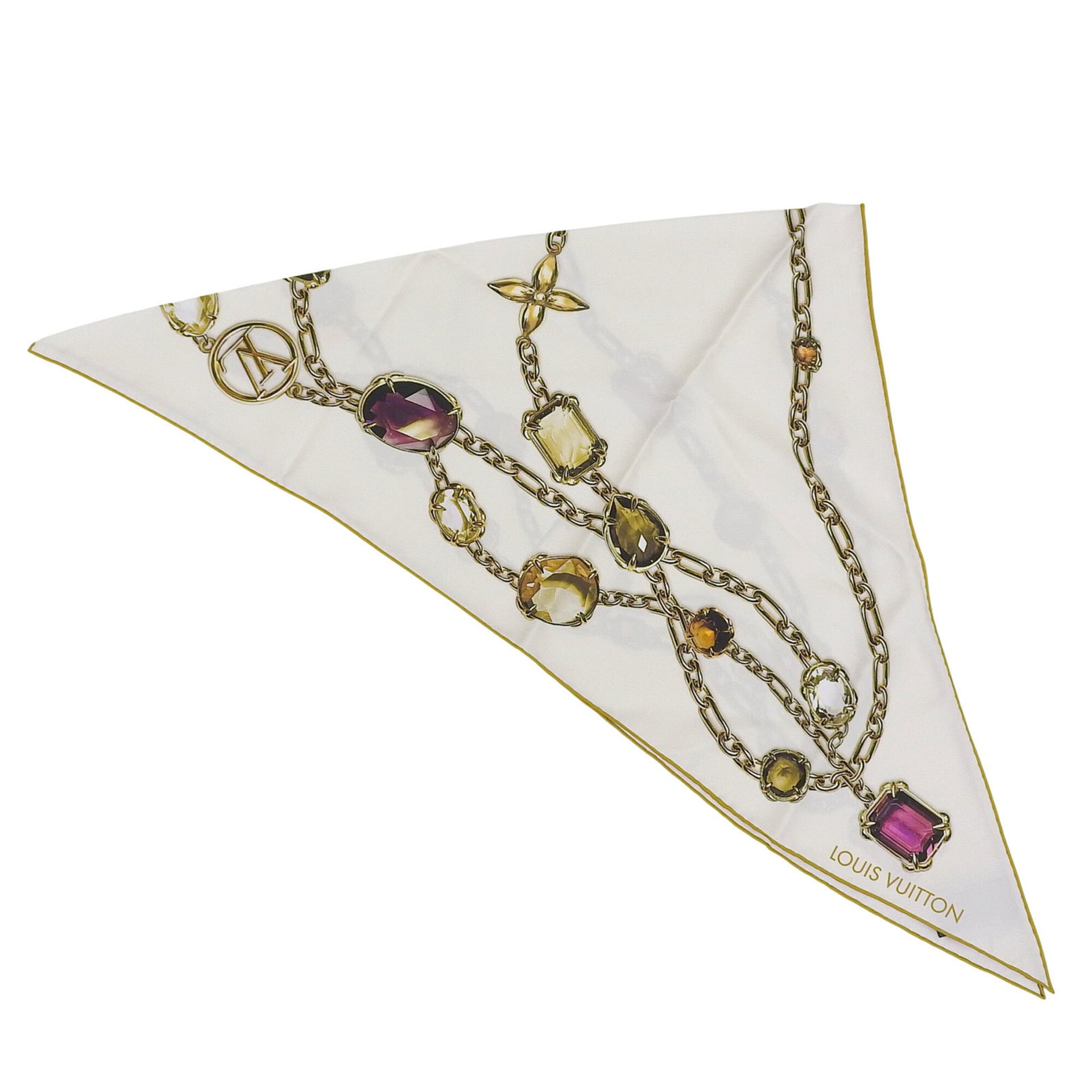 LOUIS VUITTON M96694 Heirloom Monogram Triangle 100% Silk Scarf/Muffler, White, 90 x 127 cm, Made in Italy, Authentic, Women\'s.