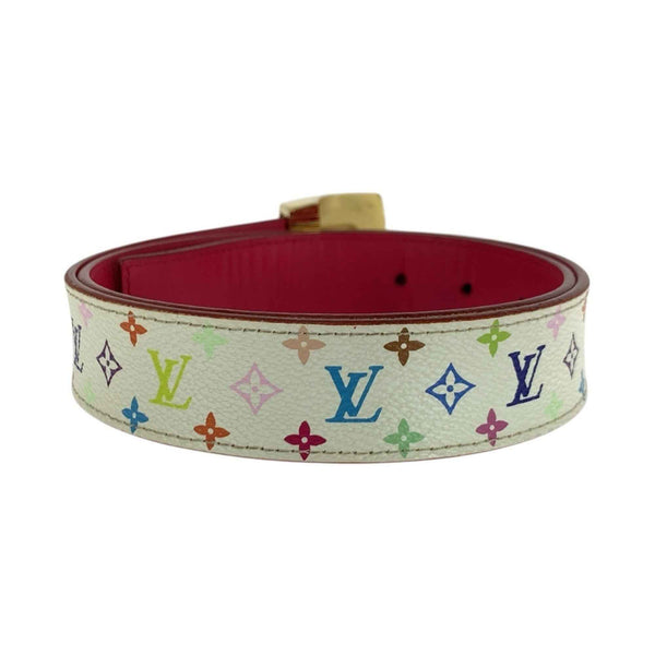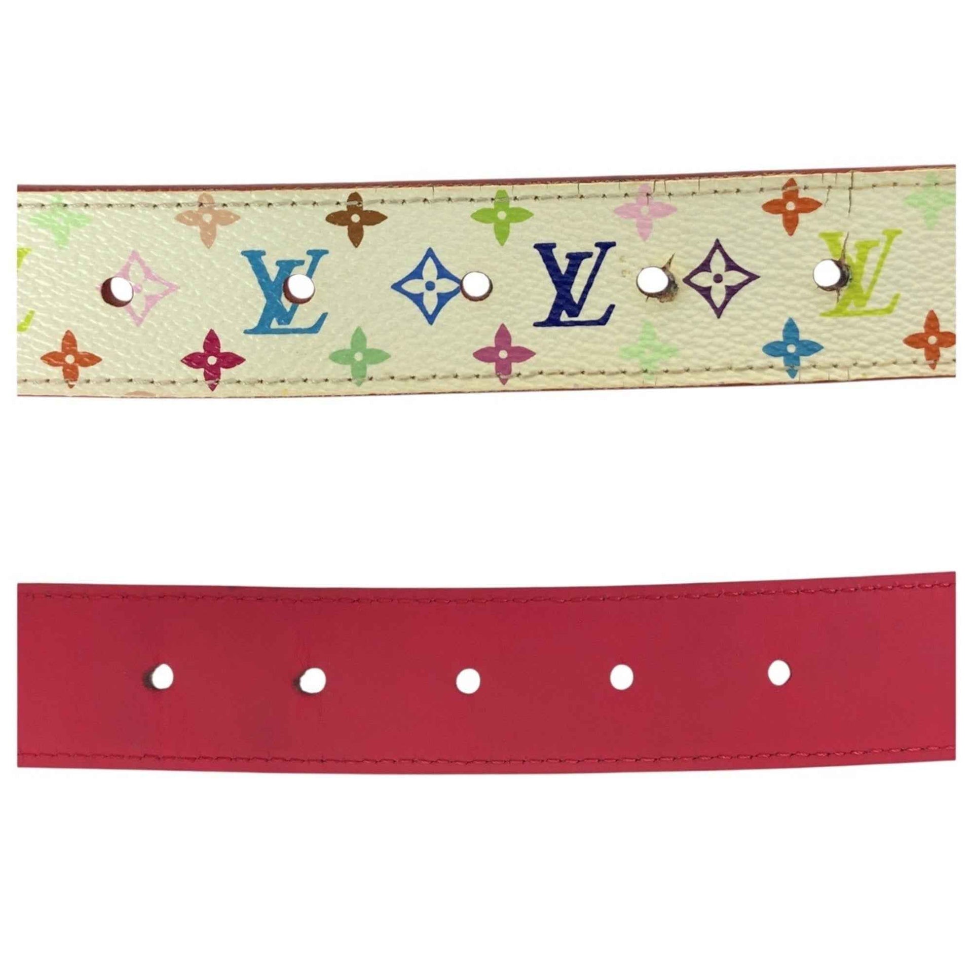 LOUIS VUITTON Monogram Multicolore Santur Carré LV Cut 75cm 30-inch White/Red/Gold Hardware Leather Belt M9682 Unisex Women\'s
