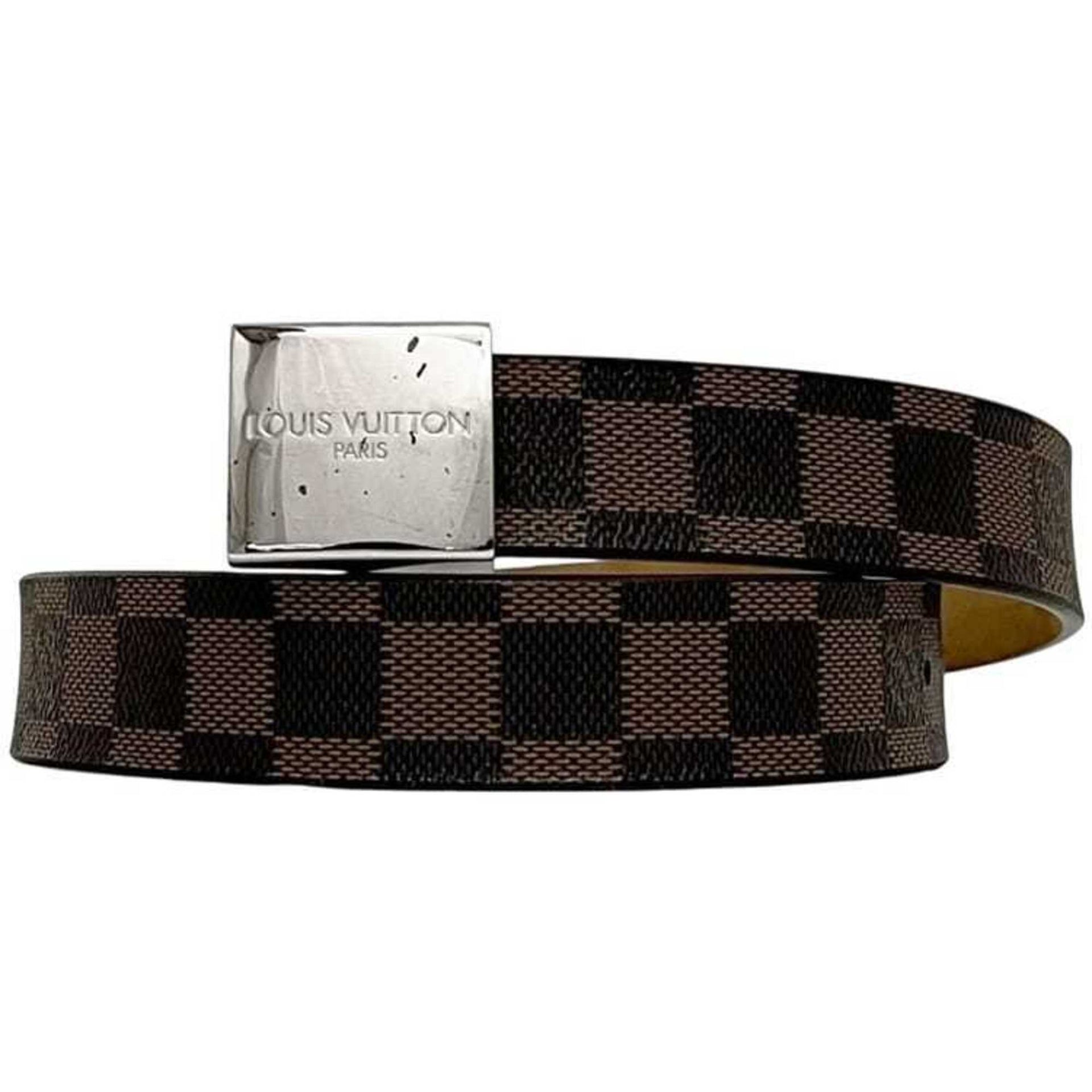 Louis Vuitton Santur Carre Belt ec-24719 Brown Damier Ebene Canvas M6802 Waist 72cm LB0033 LOUIS VUITTON Square Buckle