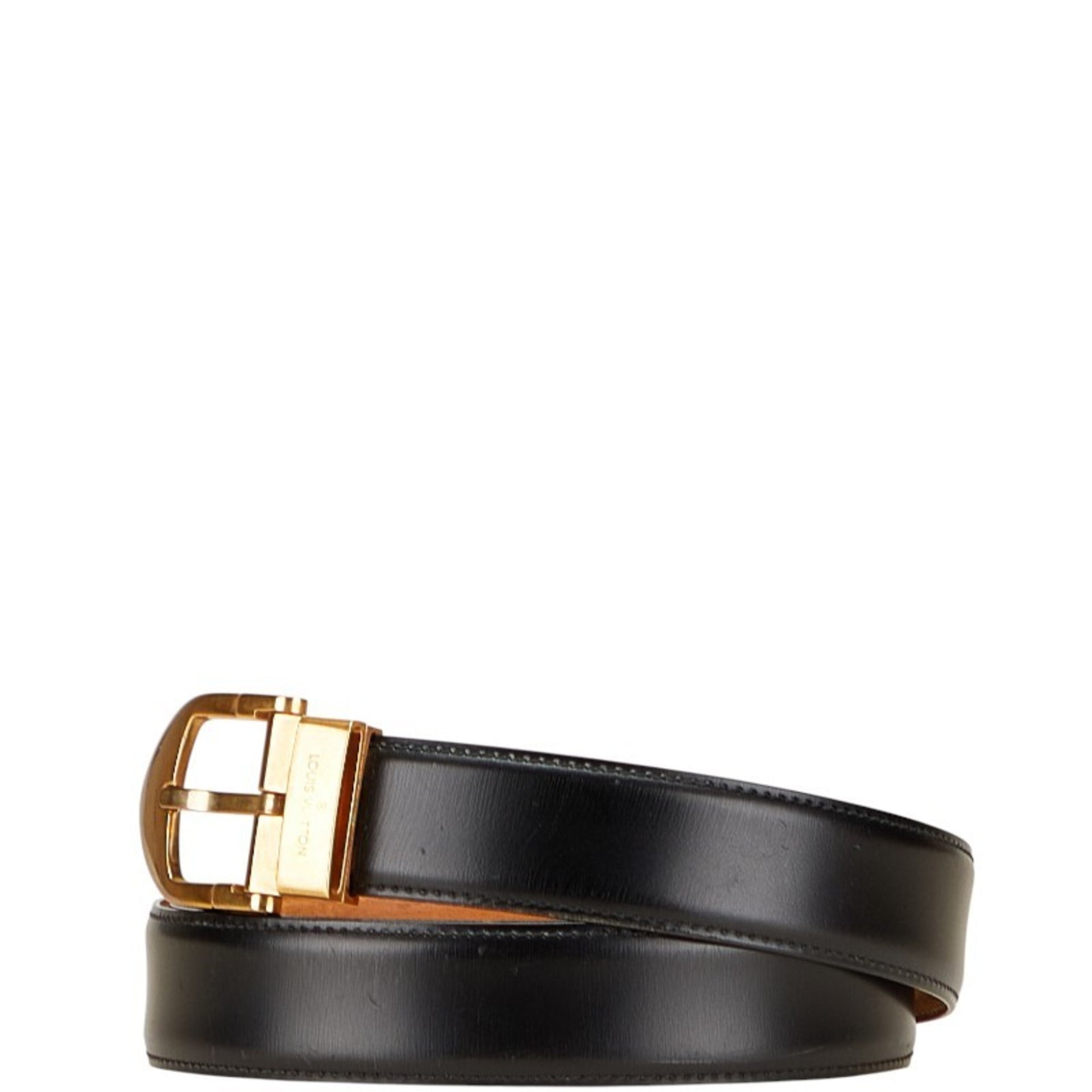 Louis Vuitton Santur Classic Belt M6883U Black Gold Plated Leather Men\'s LOUIS VUITTON
