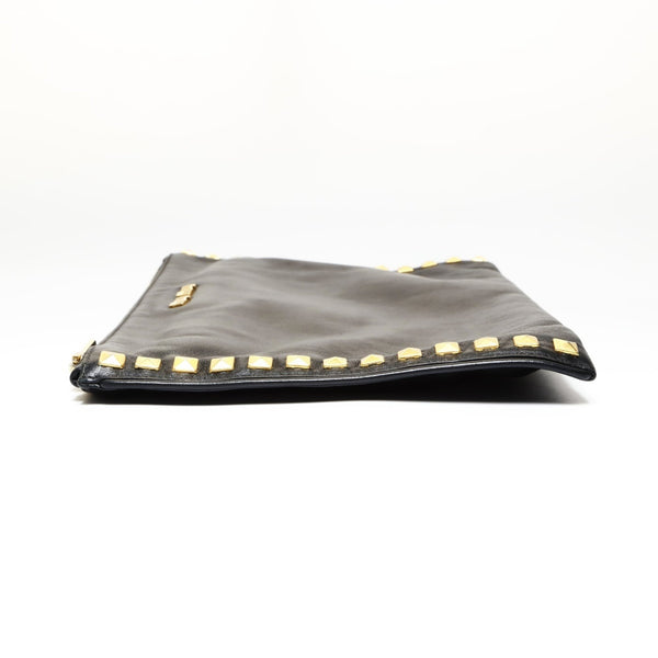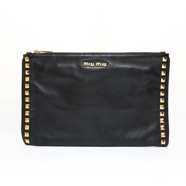 Miu Miu Miu Studded Leather Clutch Bag, Black