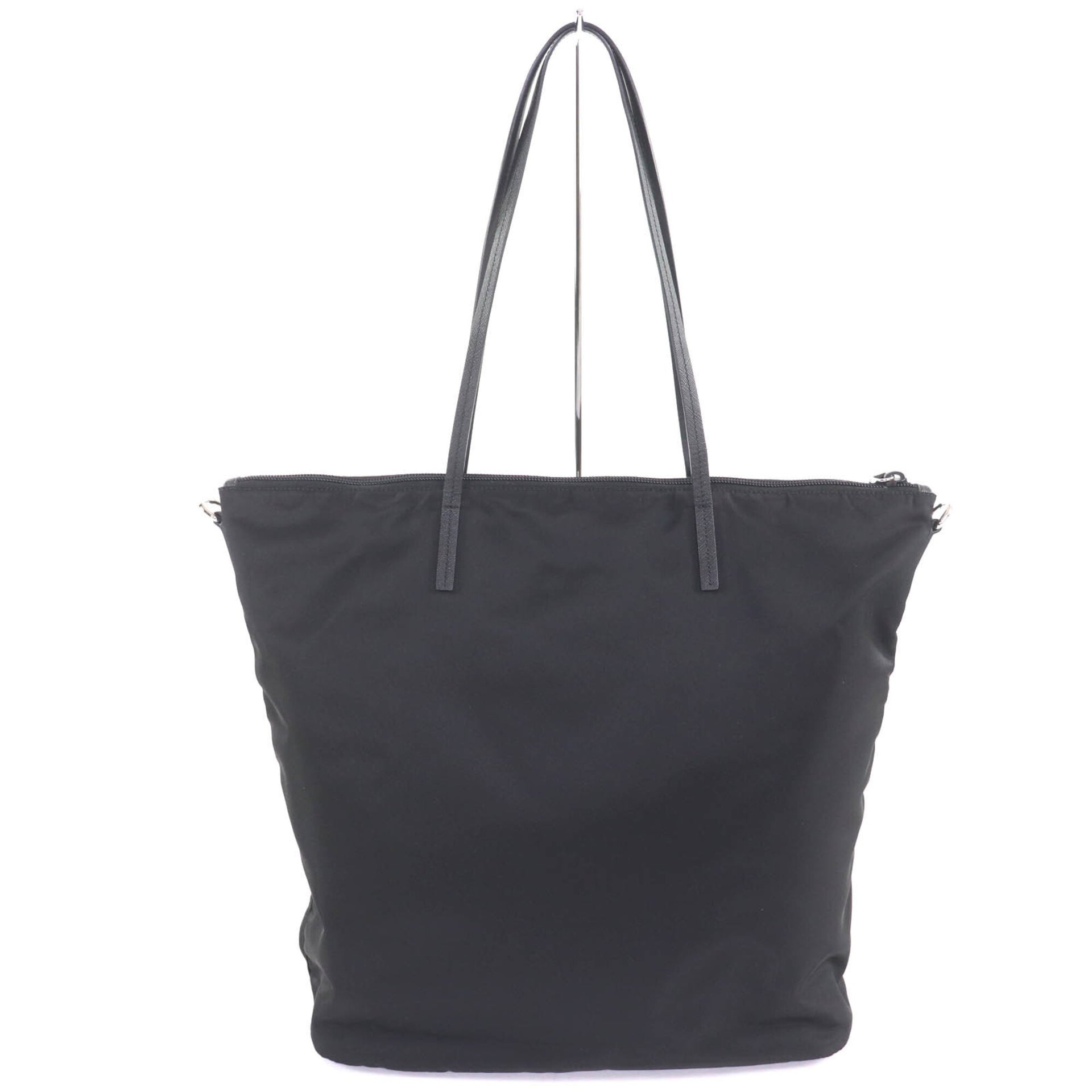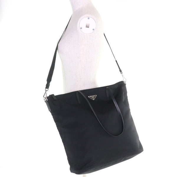 PRADA 1BG189 Triangle Logo Plate Leather Trim 2-Way Nylon Shoulder Tote Bag Black Women\'s